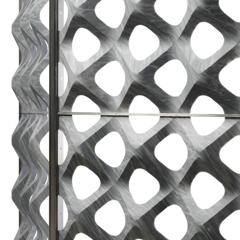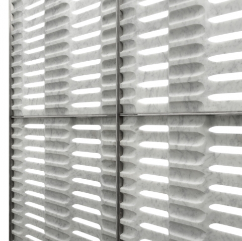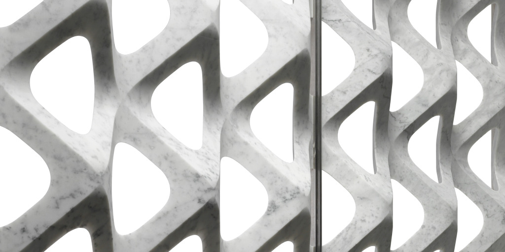 Marmor Trennwände Diaframmi – wertvolle Steckspiele by Davide Colona News - Pressemitteilungen Diaframmi ist die neue Kollektion modularer Trennwände aus Marmor von Lithos Design Primes. Die dreidimensionalen, dünnen, lichtdurchlässigen Marmorwände werden trotz ihres Gewichts zu luftig-harmonischen, funktionellen Raumteilern mit hohem dekorativem Wert. Diese unglaubliche Leichtigkeit des Marmorgesteins wird bei Diaframmi mit jener des Werkstoffs Stahl kombiniert, aus dem die Einfassungen der einzelnen 120 x 120 cm großen Module bestehen. Der geschwungene Rahmen aus Metall verleiht den Modulen Stabilität und ermöglicht es, diese wie bei einem Steckspiel, je nach den konkreten Gegebenheiten, einfach zu einer Wand zusammenzufügen. Bei Bedarf können auch Eckmodelle mit unterschiedlichem Winkel kreiert werden. Retina Design: Raffaello Galiotto Die Trennwand Retina besteht aus gelochten Marmormodulen mit ausgeprägt dreidimensionaler Struktur. Die Öffnungen, die geschwungenen Kanten, die gewundenen Formen und die matte Oberfläche verleihen der Trennwand eine von Licht umspielte Leichtigkeit. Die Fertigung der von schmalen Metallrahmen eingefassten Elemente erfolgt mithilfe einer der fortschrittlichsten numerisch gesteuerten Technologien – eine vollkommen automatisierte Bearbeitung, bei der die Verarbeitungsabfälle auf ein Minimum reduziert werden. Maße: 121,6 x 121,6 cm – maximale Stärke: 15,5 cm Materialien: Carrara Ghiaccio und Bardiglio Nuvolato. Einfassung aus Stahl. Iride Design: Raffaello Galiotto Iride besteht aus leichten, eleganten, in Metallrahmen eingefasste Marmormembranen zur dekorativen Raumtrennung. Ihr Design erinnert an das Bild der ersten Sonnenstrahlen, die am Morgen durch die Fensterläden dringen. Die Fertigung von Iride erfolgt mithilfe einer der fortschrittlichsten numerisch gesteuerten Technologien – eine vollkommen automatisierte Bearbeitung, bei der die Verarbeitungsabfälle auf ein Minimum reduziert werden. Maße: 121,6 x 121,6 cm – maximale Stärke: 8 cm Materialien: Carrara Ghiaccio und Bardiglio Nuvolato. Einfassung aus Stahl. Weitere info: http://www.lithosdesign.com/ Copyright Quelle Text und Bilder: ERGO presse agentur Lithos Design Primes Danke fürs Teilen! 🙂teilen teilen merken teilen teilen RSS-feed