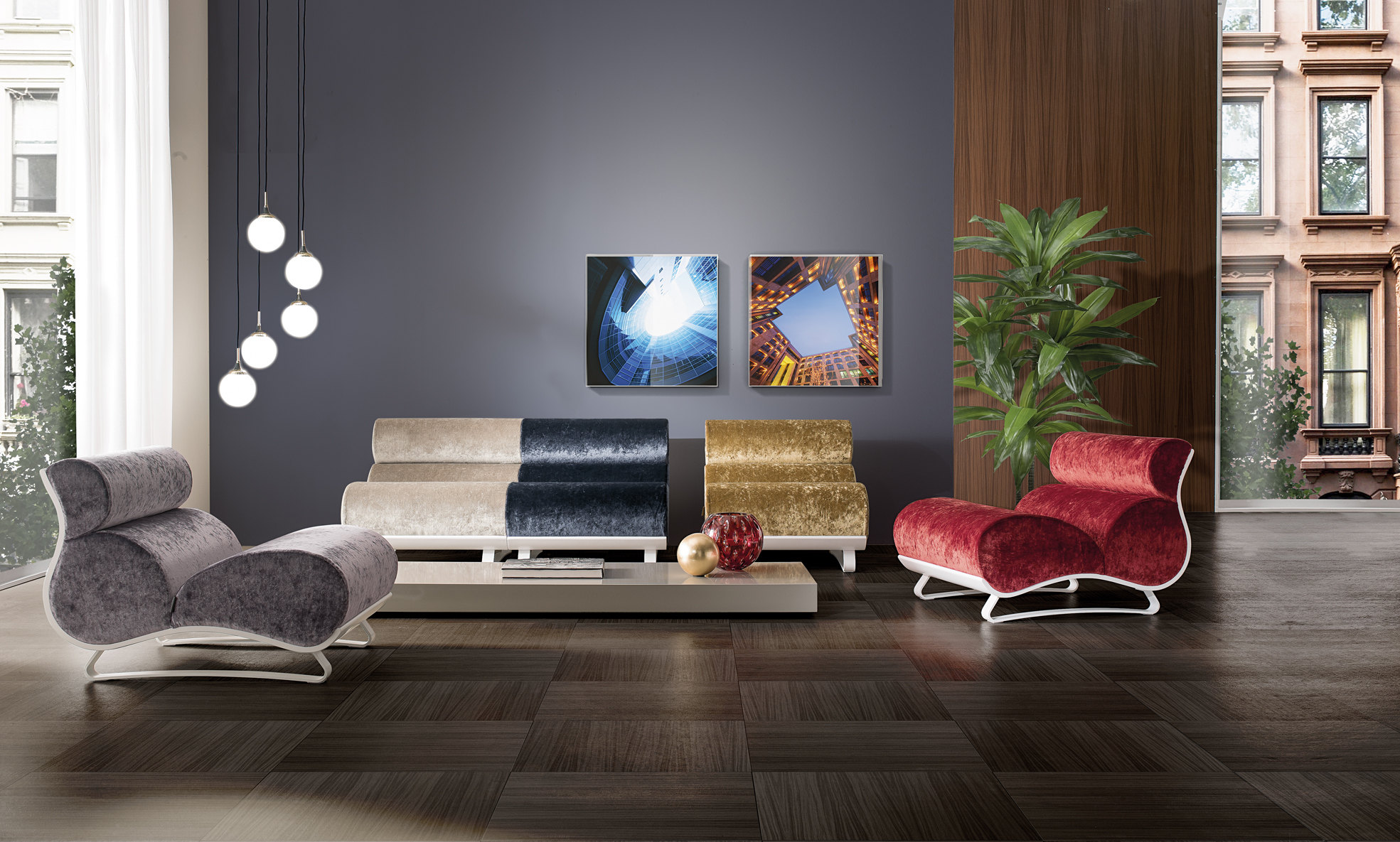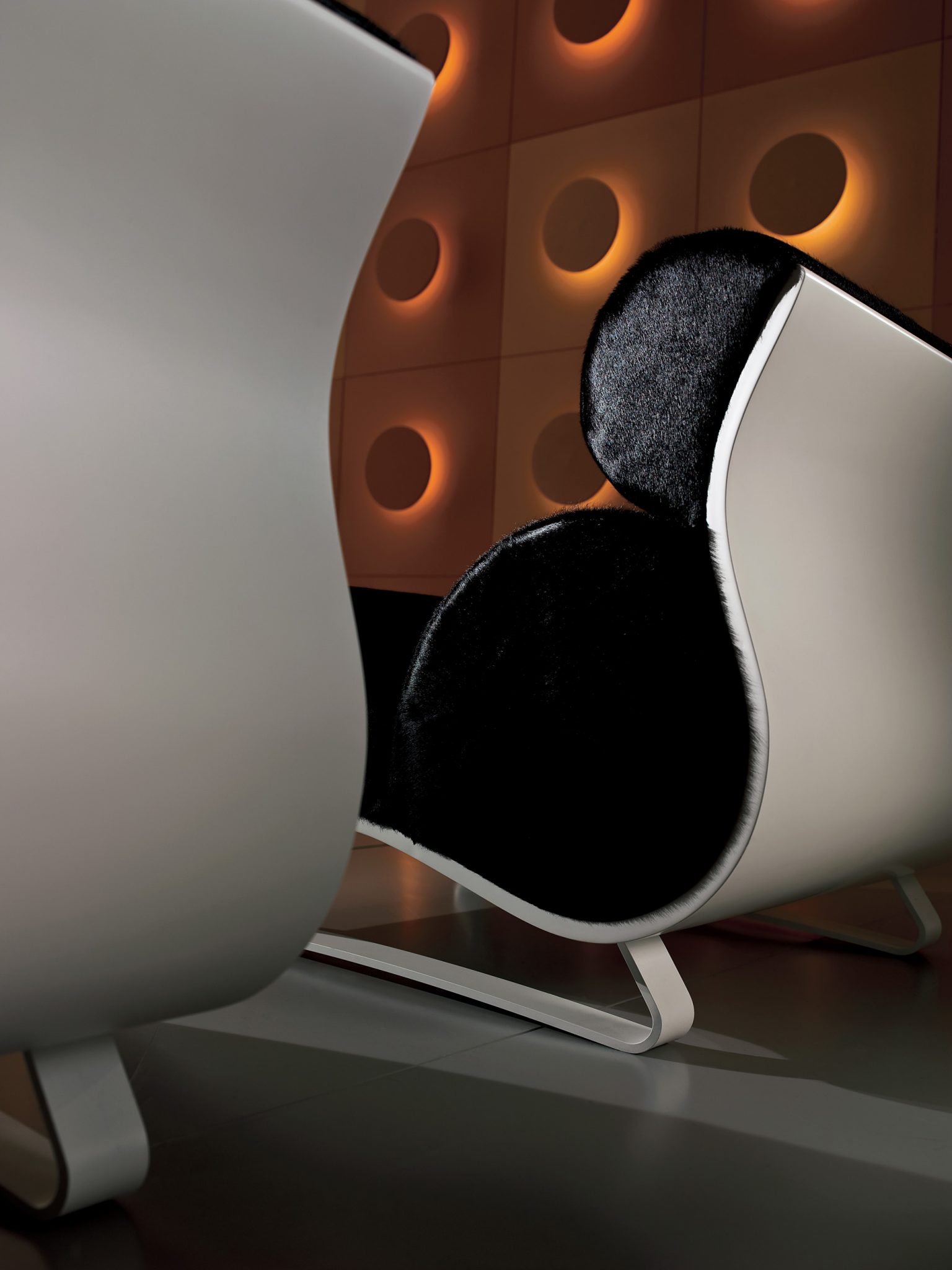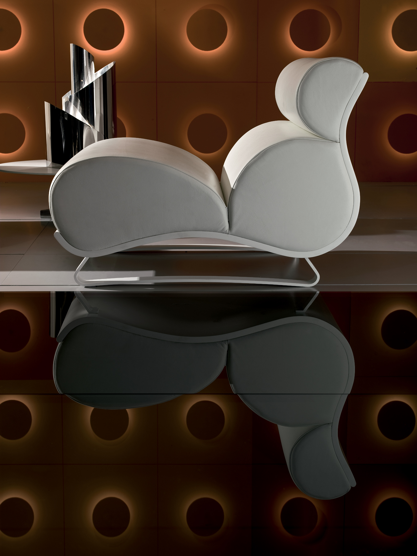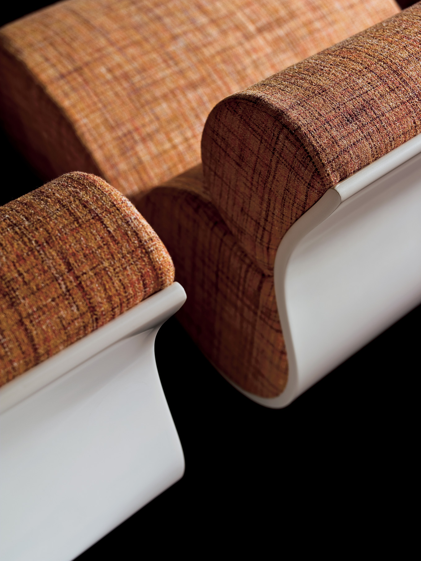 Die tragende Struktur besteht aus zwei Schichten Buchenholz gebogen und in Form fixiert gegeneinander, die äussere Schicht ist weiss lackiert während auf der Inneren die Polsterung befestigt ist. Die Polsterung des Gestells und das befestige Sitzkissen vom Rücken besteht aus unverformbaren FCKW-FREIEN Pur-Platten mit unterschiedlicher Dichte zwischen 40 kg/m3 und ist überzogen mit Polyesterwatte und Verbundvelours. Die Träger sind aus Stahl mit Epoxydpulver-Einbrennlackierung eingesetzt, oder verchromt.
