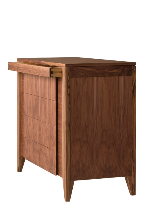 Massivholz Intarsien Lackierter Nachttisch Nachtkommode mit silbernen Fronten und 2 Schubladen