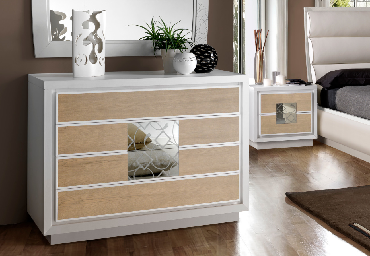 Dekorationen: Die Dekorationen auf den Kommoden der Kommode oder an den Türen der Sideboards werden von Hand bemalt und laden wertvolle Möbel mit wertvollen Details ein. Möbel, die das Handwerk auf den ersten Blick genießen lassen. Das Silberblatt und das Goldblatt in den Schnitzereien vervollständigen die Eleganz des lackierten Möbels.