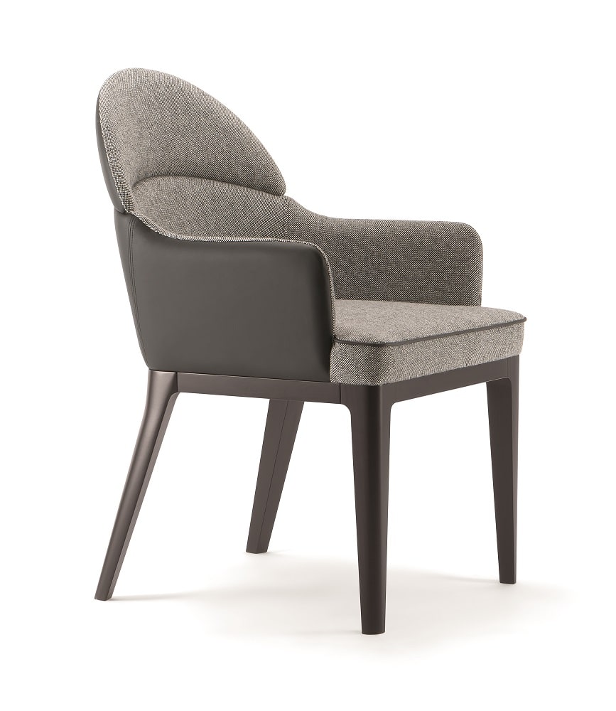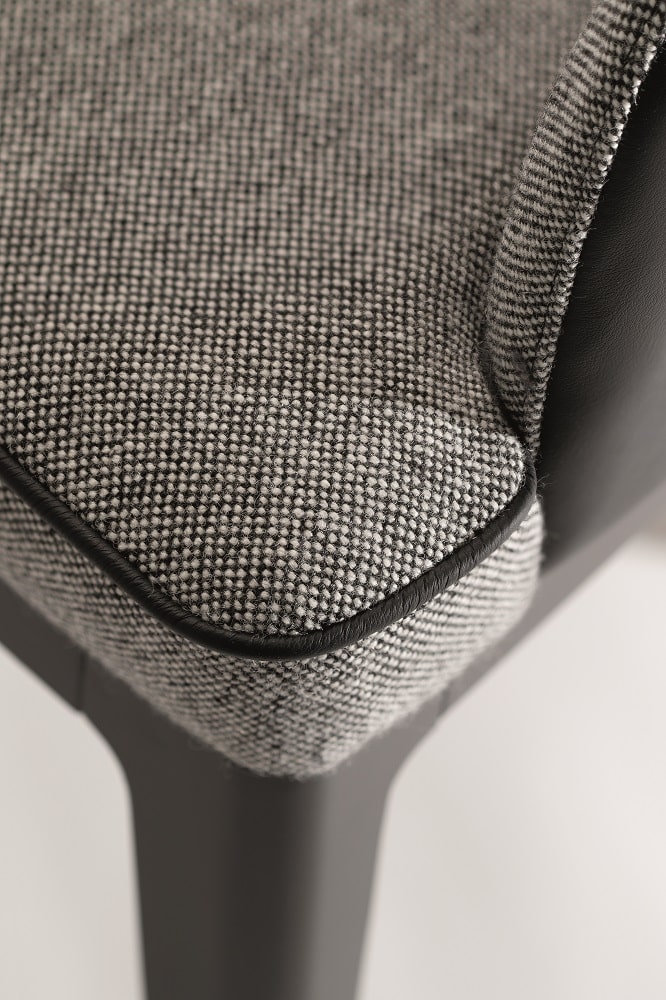 Die besondere Persönlichkeit dieser Linie ergibt sich aus der Verschmelzung von geschwungenen Formen und der geschickten Abstimmung von Holz- und Polsterteilen. Das scheinbar einfache Design ist perfekt umgesetzt, wobei die wichtigsten Aspekte des Designs, wie die Polsterung und die Holzoberflächen, passend zu Ihrem Interieur festgelegt werden können. Zur Aston-Kollektion gehören auch ein passender Sessel, ein Beistellstuhl und ein Barhocker, um den Look zu vervollständigen. Das breite Angebot an hochwertigen Stoffen und Holzbeizen macht dieses Produkt sehr anpassungsfähig.