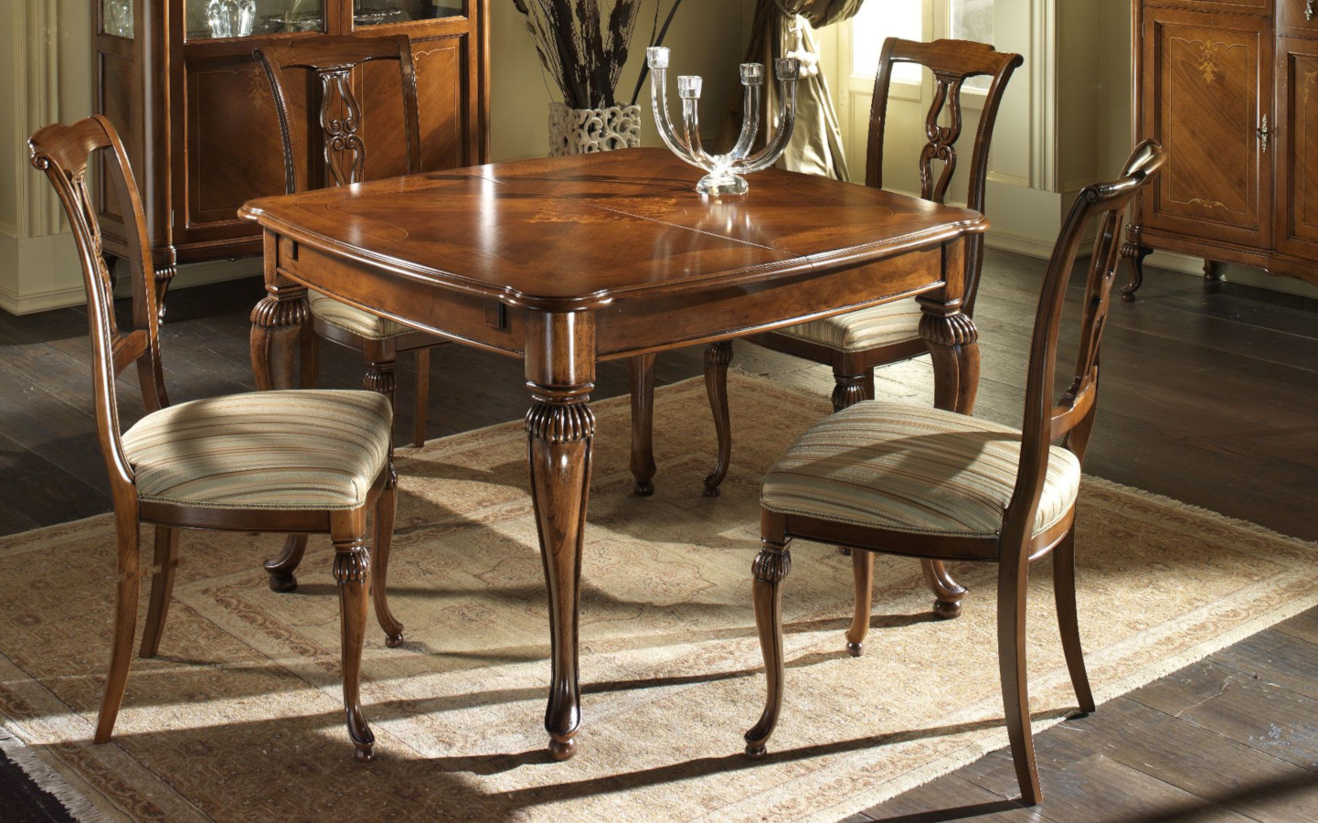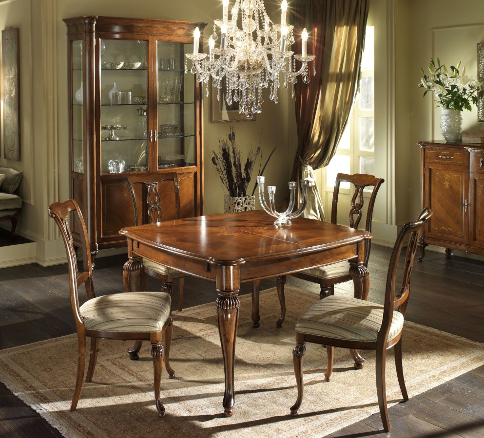 Wahl des Holzes: Es werden unterschiedliche Essenzen verwendet, die jeweils die Einrichtungselemente aufwerten, die durch bestimmte Inlays und Schnitzereien bereichert werden. Die Verwendung von Massivholz erster Qualität gewährleistet über die Jahre eine spürbare Qualität und Haltbarkeit.