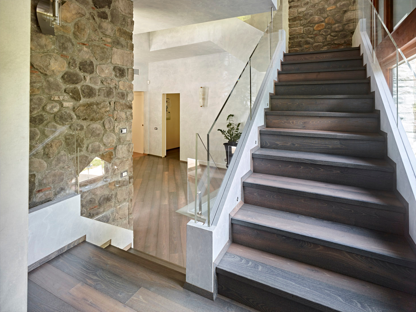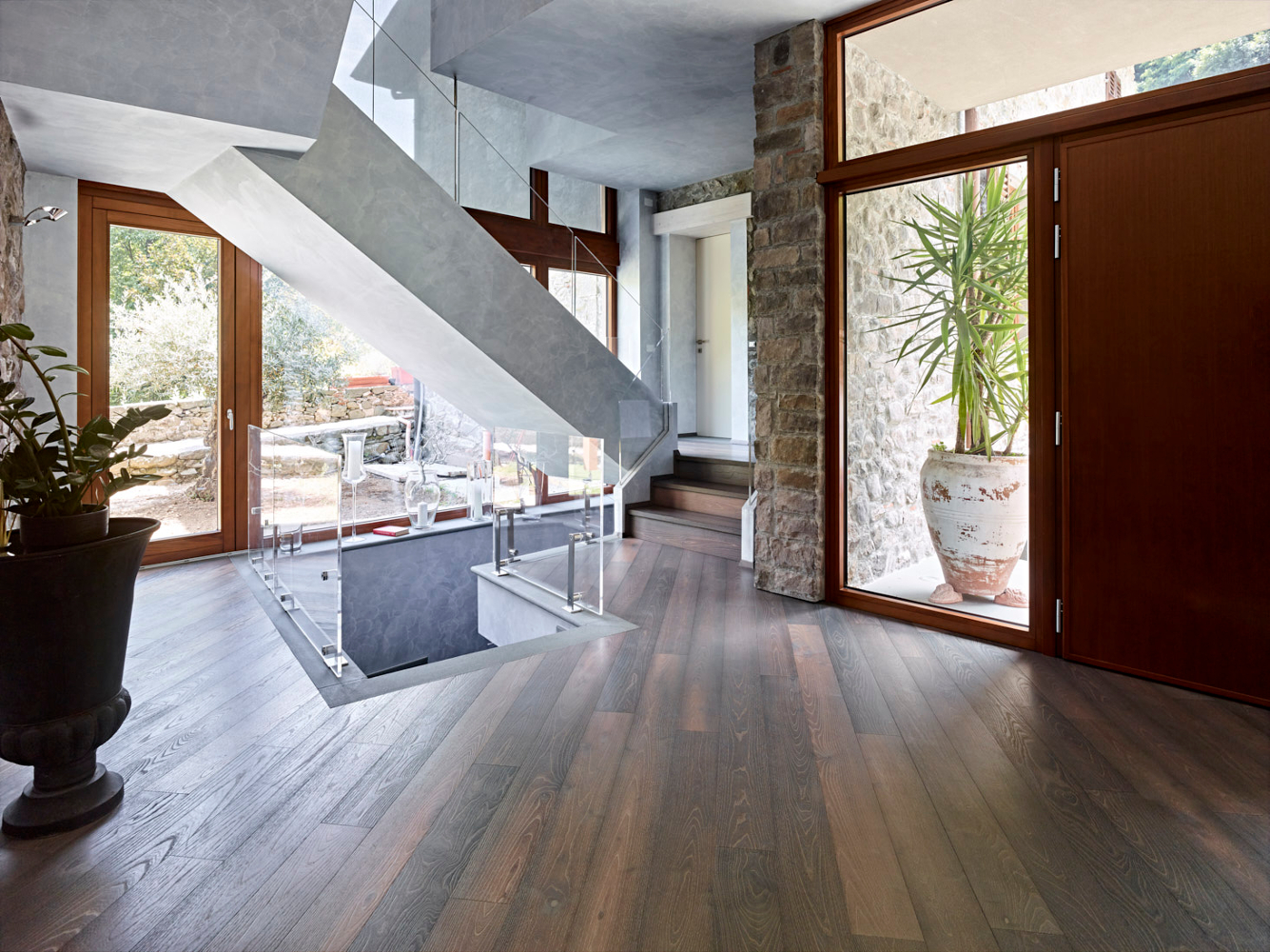 Das Wesen des Holzes bleibt das Gleiche, aber es bekommt durch die Thermobehandlung Thermowood ein neues, einzigartiges und unnachahmliches Licht. Das Holz der oberen Lamelle wird hohen Temperaturen ausgesetzt, die Feuchtigkeit verringert sich dadurch und der Holzzucker in den verschiedenen Holzarten karamellisiert. Dadurch wird die Schicht in der gesamten Stärke dunkler und härter. Das Holz wird resistenter gegen Aufquellen und gewinnt an Dimensionsstabilität. Es bekommt Nuancen erlesenster Ästhetik, warm und intensiv, die von den dunklen Tönen der feuchten Erde bis zur karamellfarbenen Schattierung des Honigs gehen. Alle Dielen erhalten die exclusive Behandlung Fiemme 3000 Bio Plus, die zu 100% biokompatibel ist und die das Holz bis in die Tiefe nährt und schützt, ohne die Poren zu verschließen. Die Kombination der Behandlung mit Bio Plus und Thermowood macht die Luci di Fiemme Böden einzigartig in Schönheit und Haltbarkeit. Sie sind besonders für feuchte oder stark strapazierte Räume geeignet, wie Küchen, Bäder, Showrooms oder Büros sowie auch bei Fußbodenheizung.