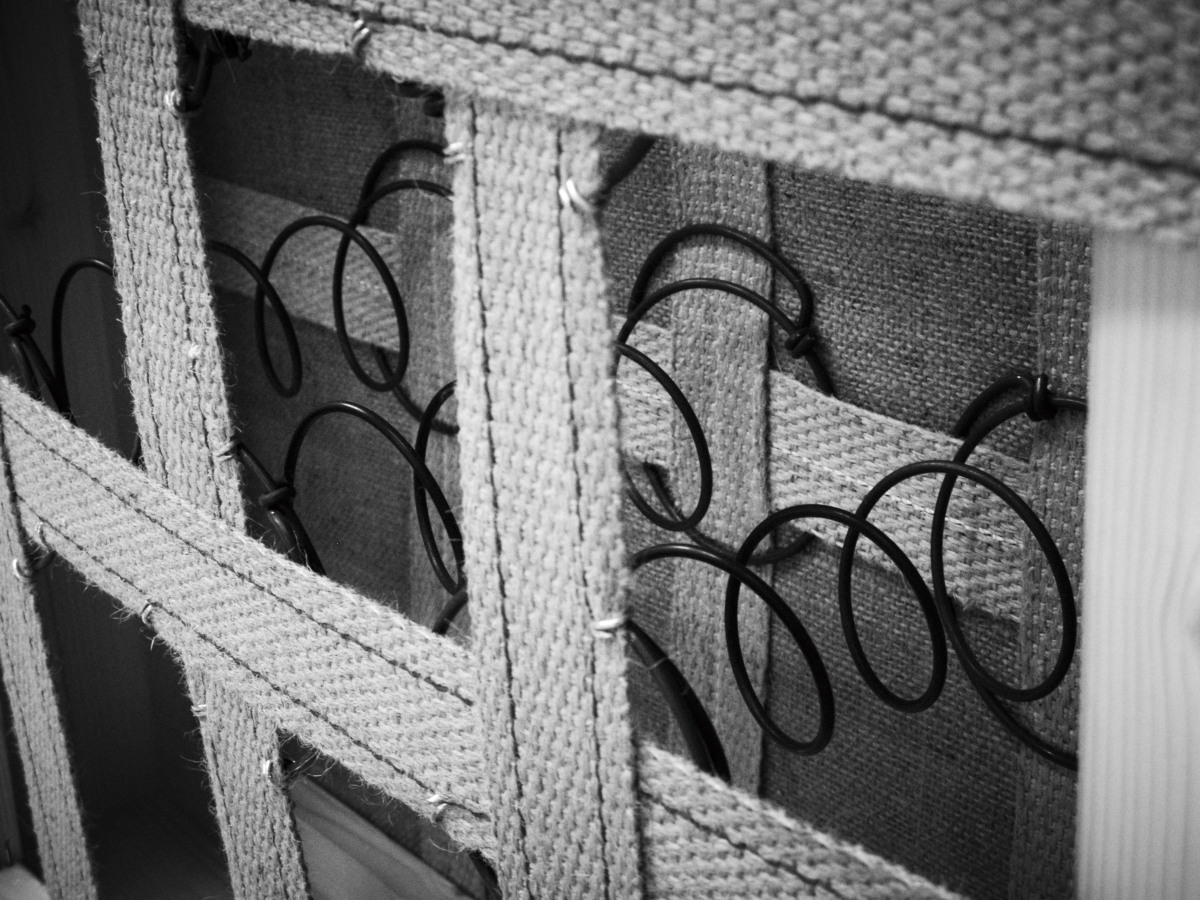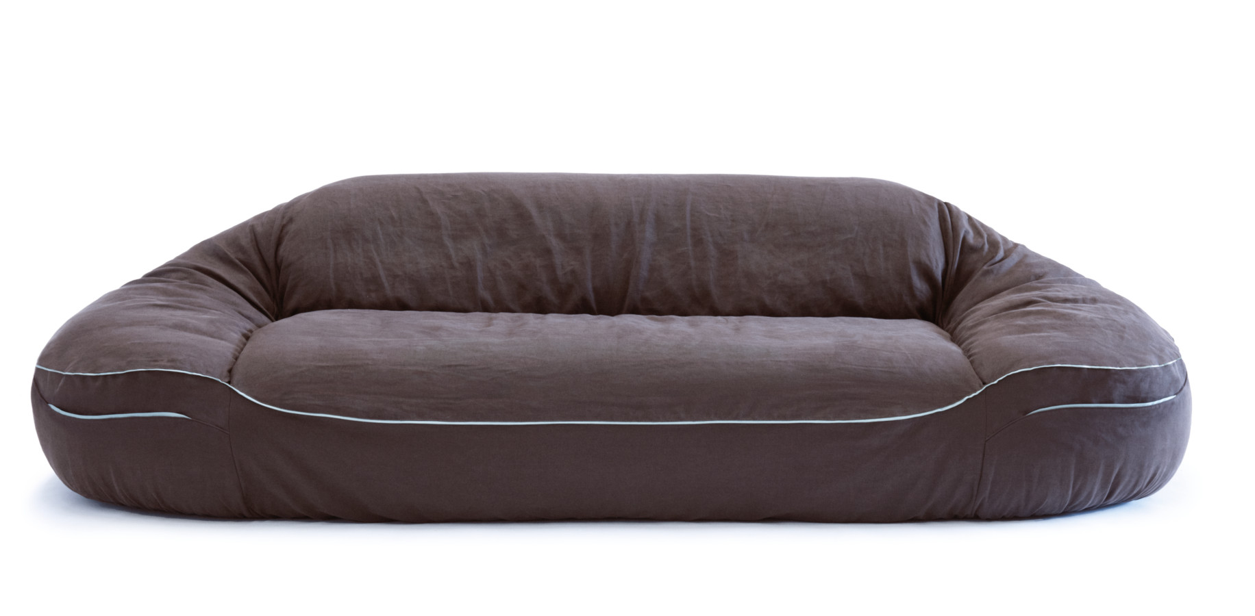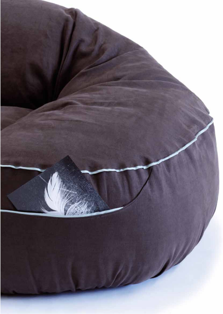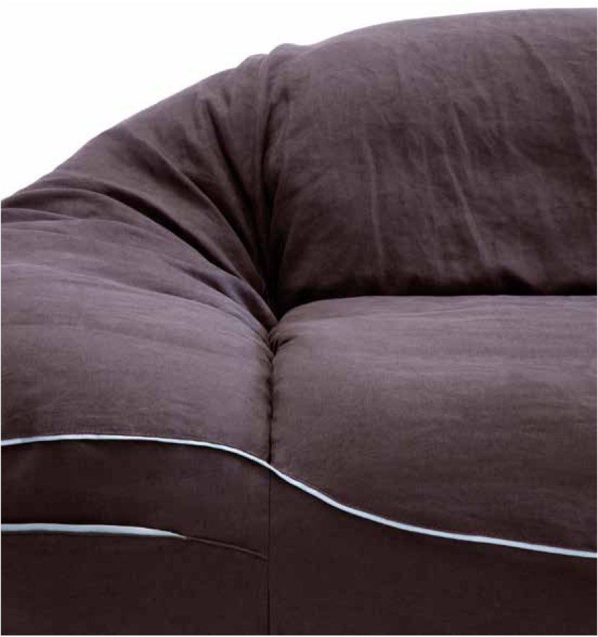 Materialien: _ Massivholz int. Gestell aus massivem getrocknetem Buchenholz _ Jute-Gürtel _ Stahlfedern _ Gänsedaunenschicht _ Schaumstoffpolsterung auf Basis natürlicher Öle und Kräuter _ Bio-Baumwolle