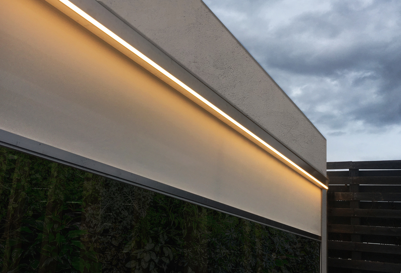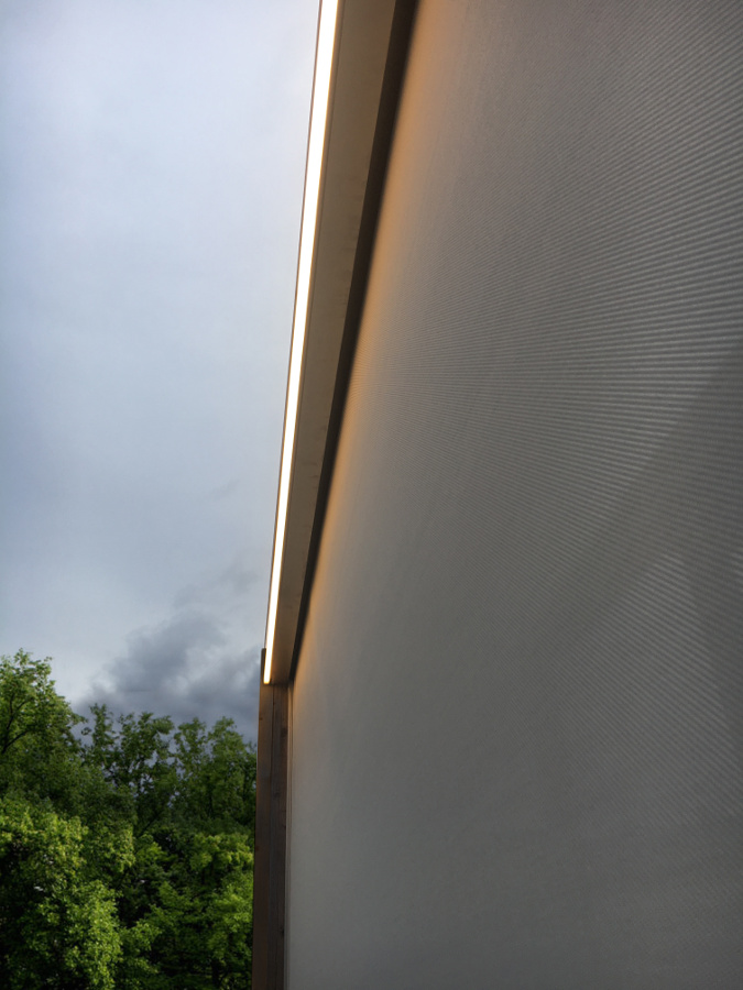 Die Schienen sind so bemessen, dass sie auch dann besonders unauffällig sind, wenn es technisch nicht möglich ist, den Screen vollständig zu integrieren,wodurch die Struktur leichter wirkt und gleichzeitig ein Schutz vor Witterungseinflüssen gewährleistet ist. Die Maximalgrößen von Magiko betragen 600 cm Breite mit Glassrope-Gewebe und 270 cm Höhe, obwohl es möglich ist, eine Höhe von bis zu 370 cm mit einer Breite von 470 cm zu erreichen. Die extreme Formenreinheit und der äußerst kompakte Raumbedarf machen Magiko zu einem besonders attraktiven Produkt in Bezug auf Design und Leistung.
