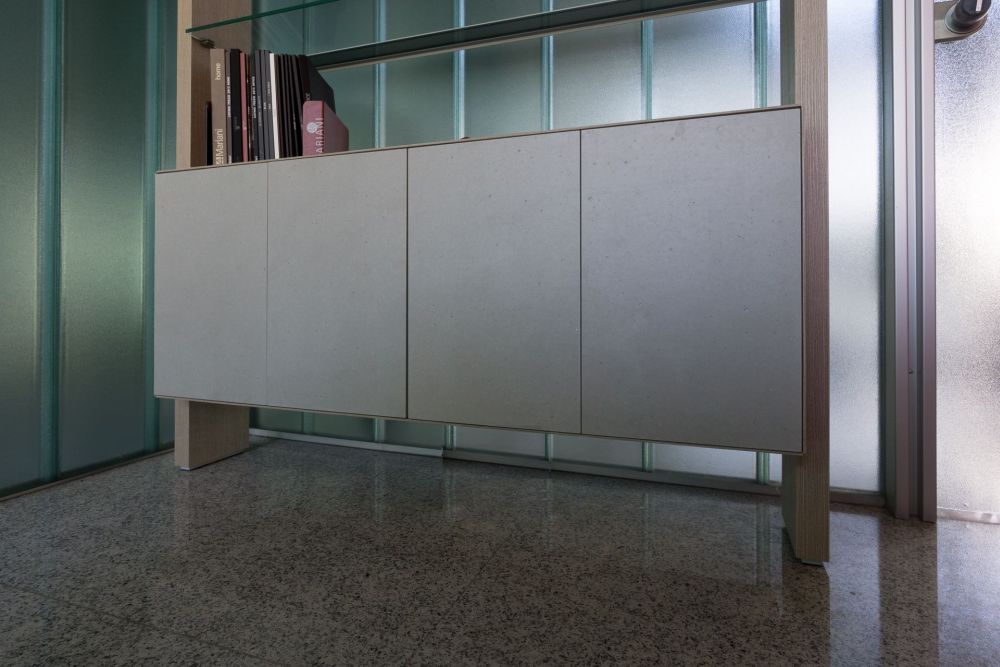 Concreo® ist ein Feststoff und  wird  als  Platte  mit  wertvollen  Oberflächeneigenschaften  produziert. Die besondere Struktur des Materials ermöglicht die gleichen Realisierungen oder Verkleidungen wie gegossener Zement, mit der einfachen Verarbeitungsweise eines Holzpaneels, mit den gleichen Werkzeugen,, den gleichen Schneidvorrichtungen, Maschinen, Ausrüstungen, Schrauben und dem Befestigungszubehör fürl Holz: Eine Revolution im Gebrauch von Zement im Bereich gehobenes Design und anspruchsvolles Interieur