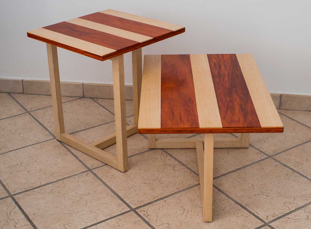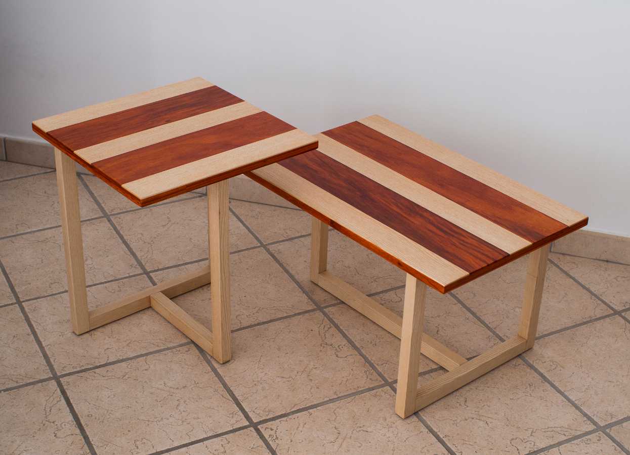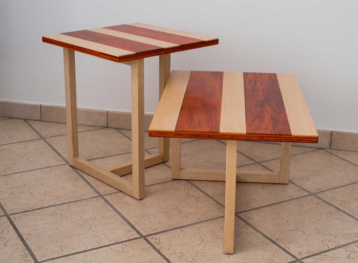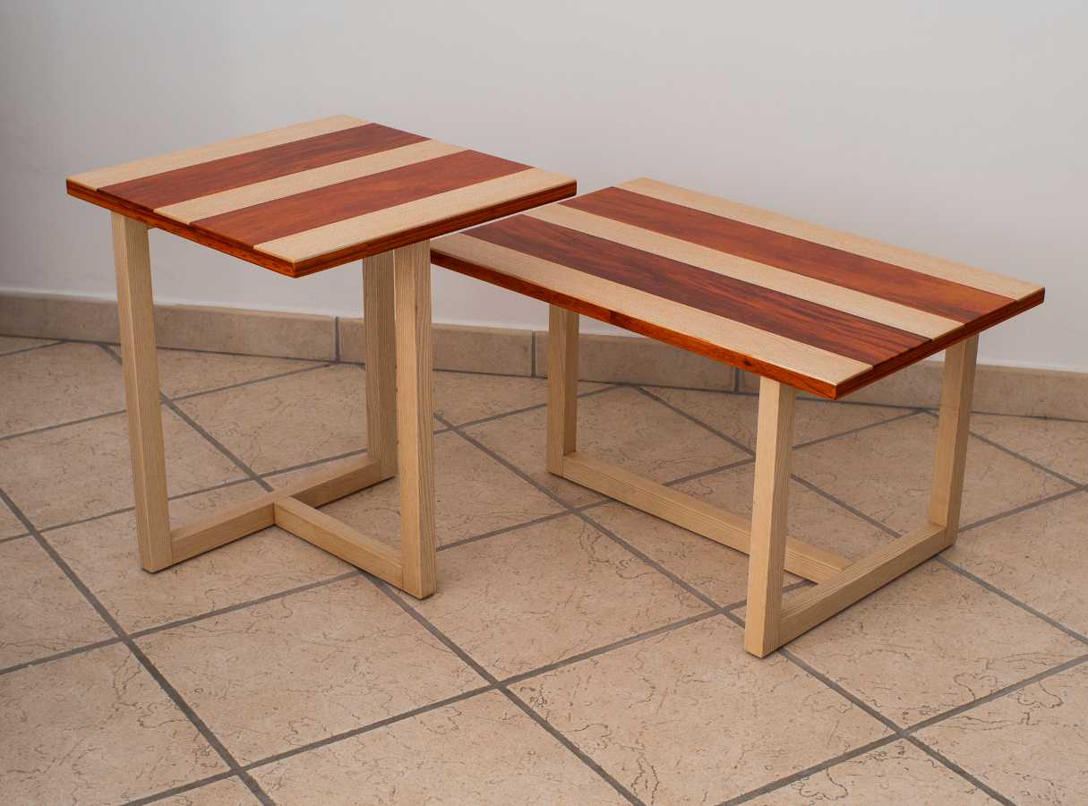 Couchtischpaar aus Padouk und Eschenholz