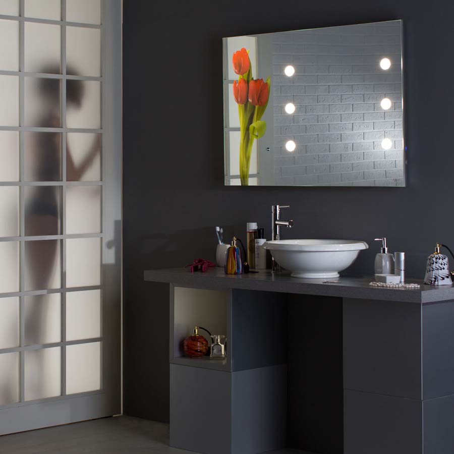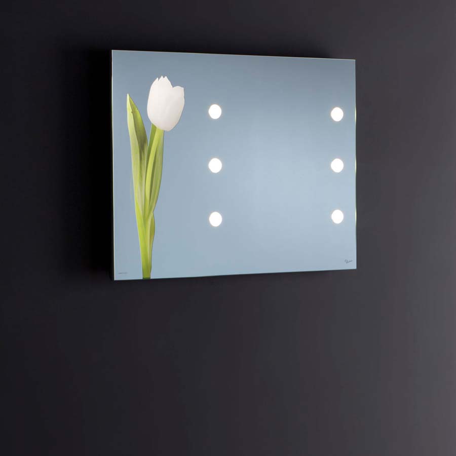 • In die Spiegeloberfläche eingesetzte opalene Lichtlinsen