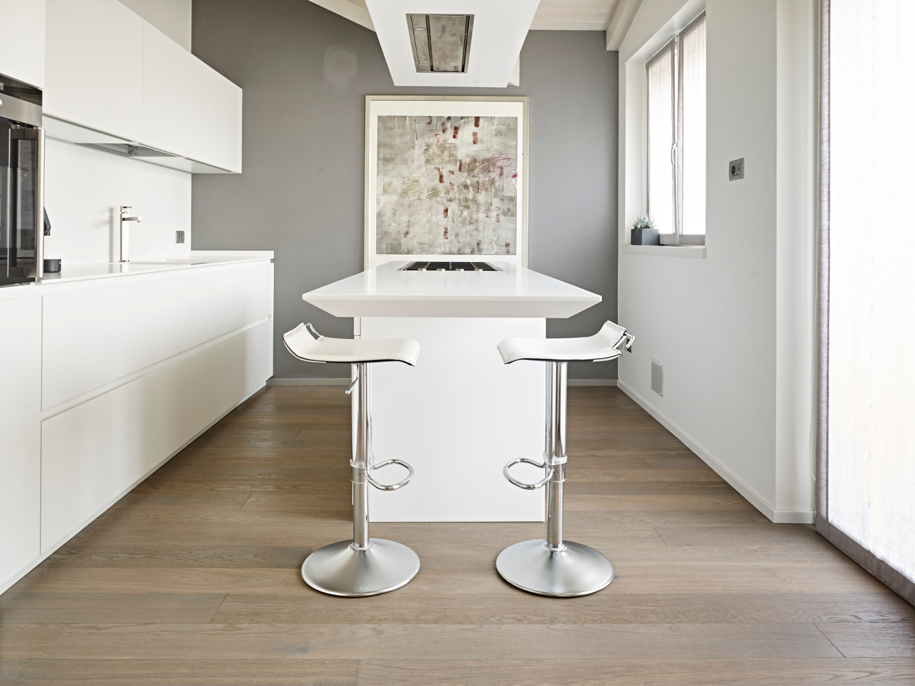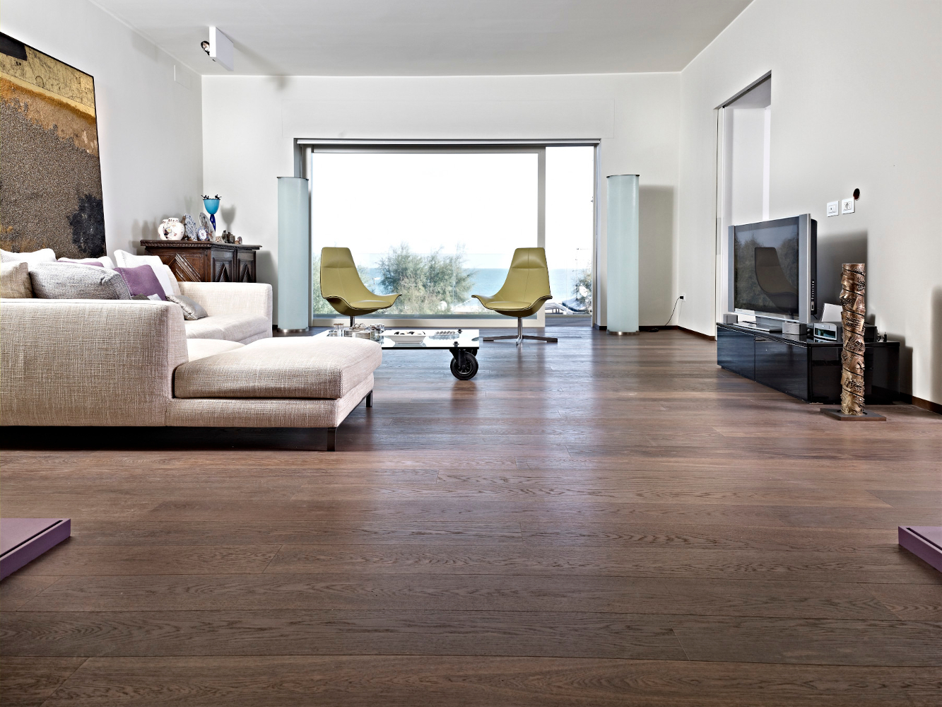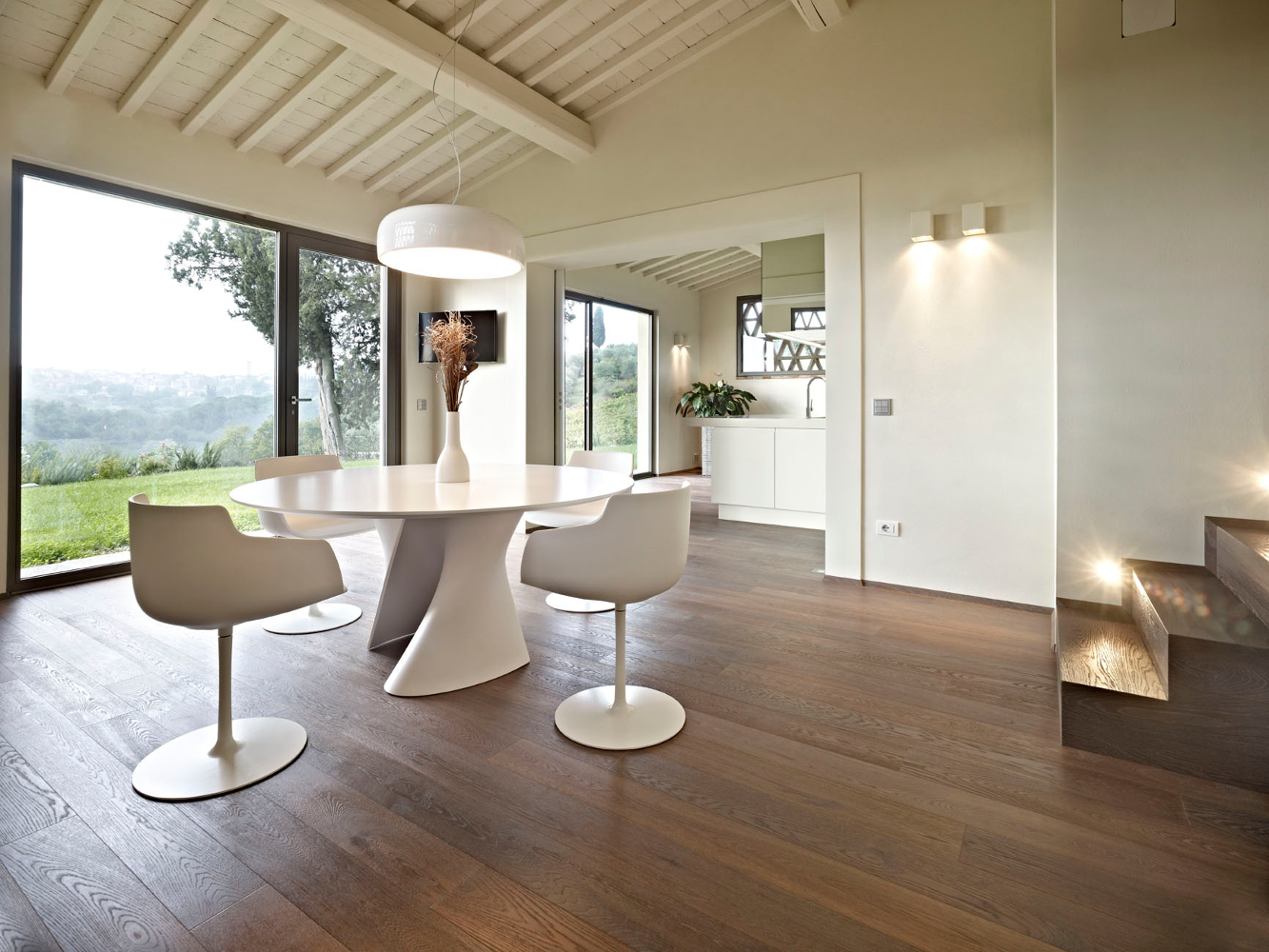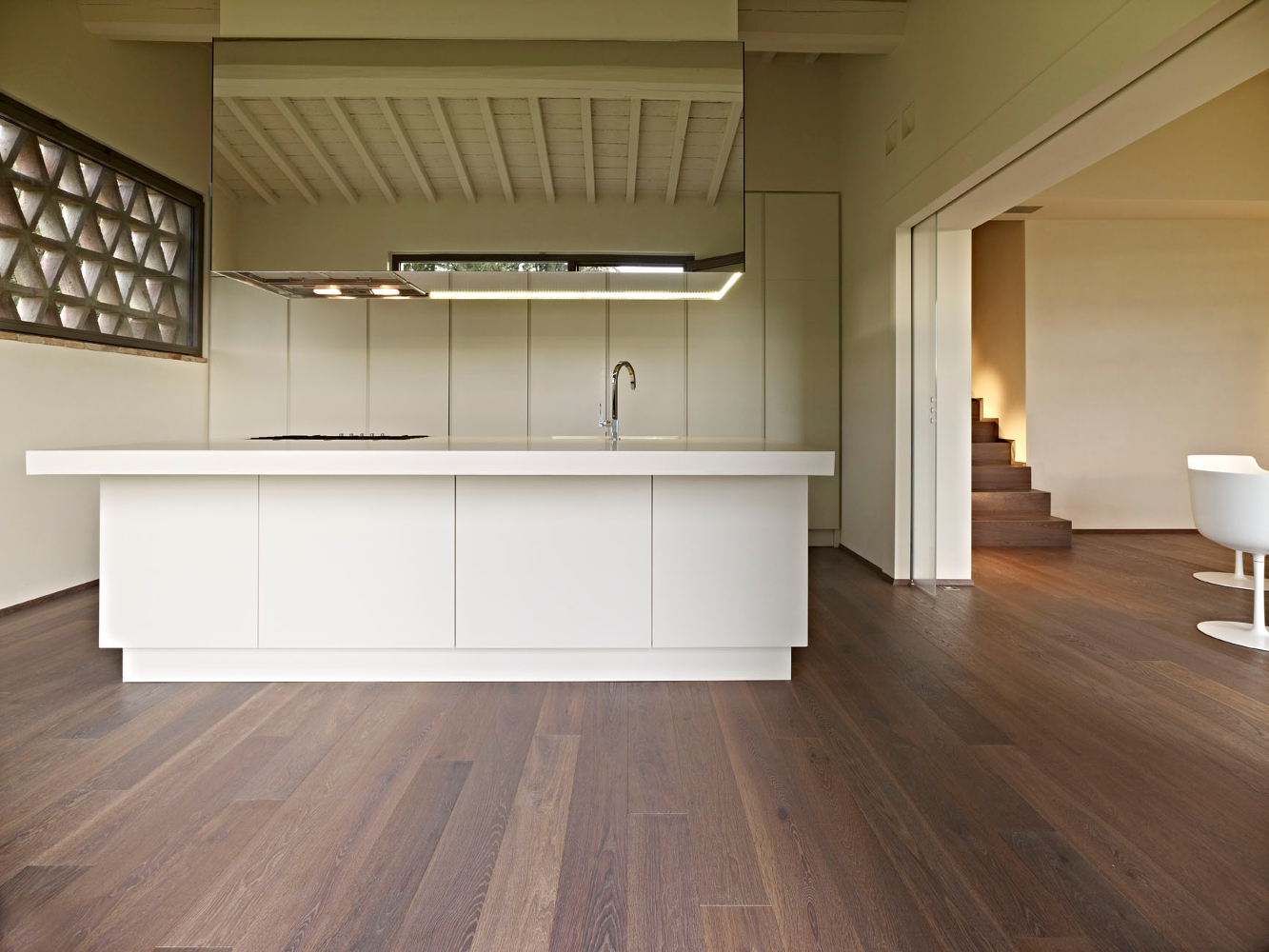 Die Kombination der Behandlung mit Bio Plus und Thermowood macht die Luci di Fiemme Böden einzigartig in Schönheit und Haltbarkeit. Sie sind besonders für feuchte oder stark strapazierte Räume geeignet, wie Küchen, Bäder, Showrooms oder Büros sowie auch bei Fußbodenheizung.