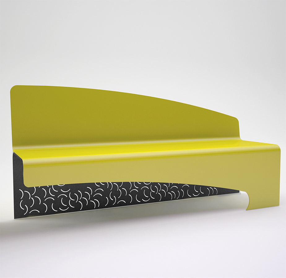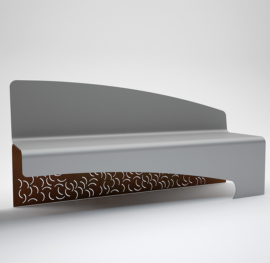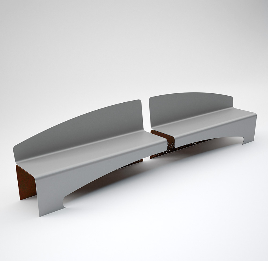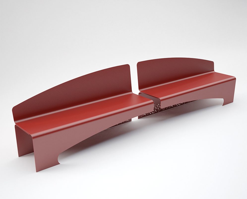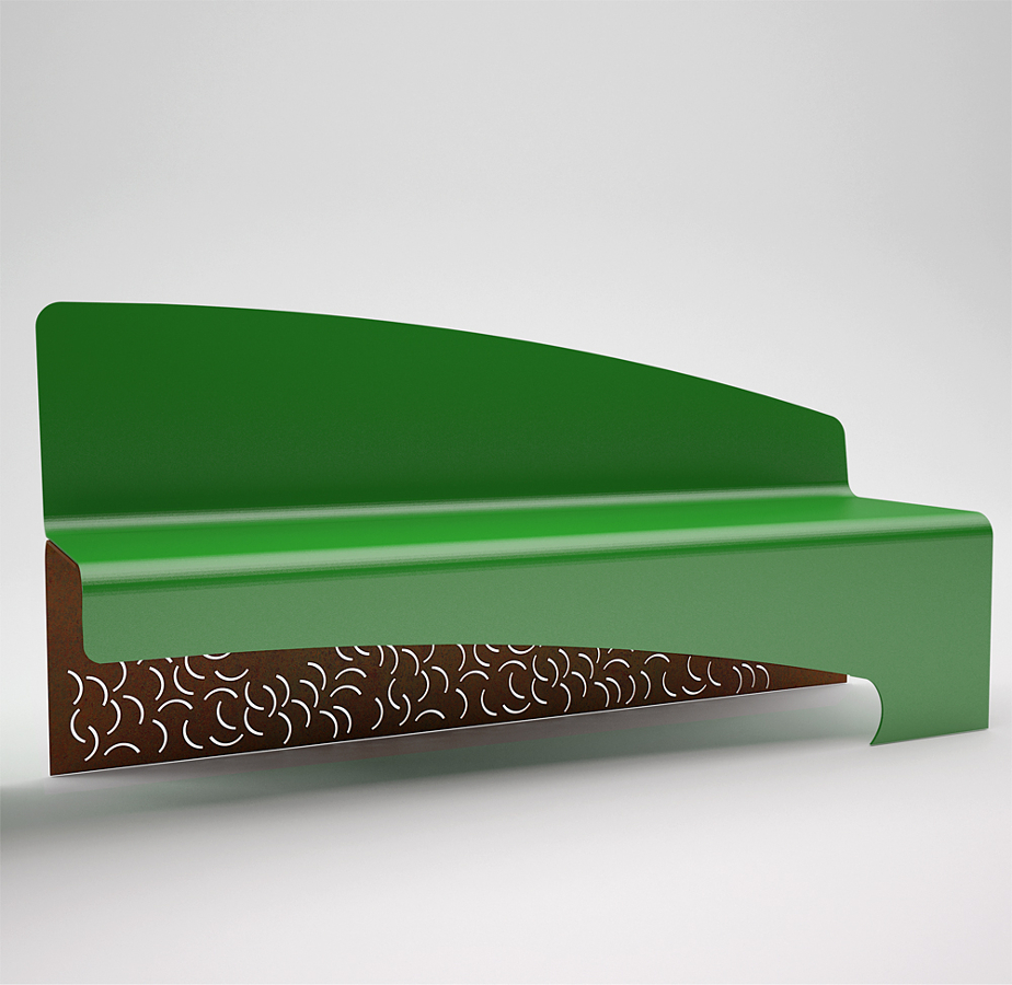 COMPOSITION: – One unique anti-yeld steel structure, bent, laser cut, galvanized and painted,2 holes of 14 mm for fitting to the ground – seat and backrest realized in unique anti-yept steel structure , bent, galvanized and painted