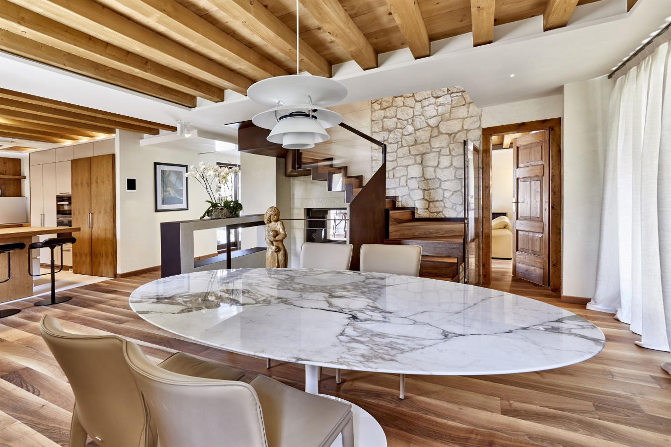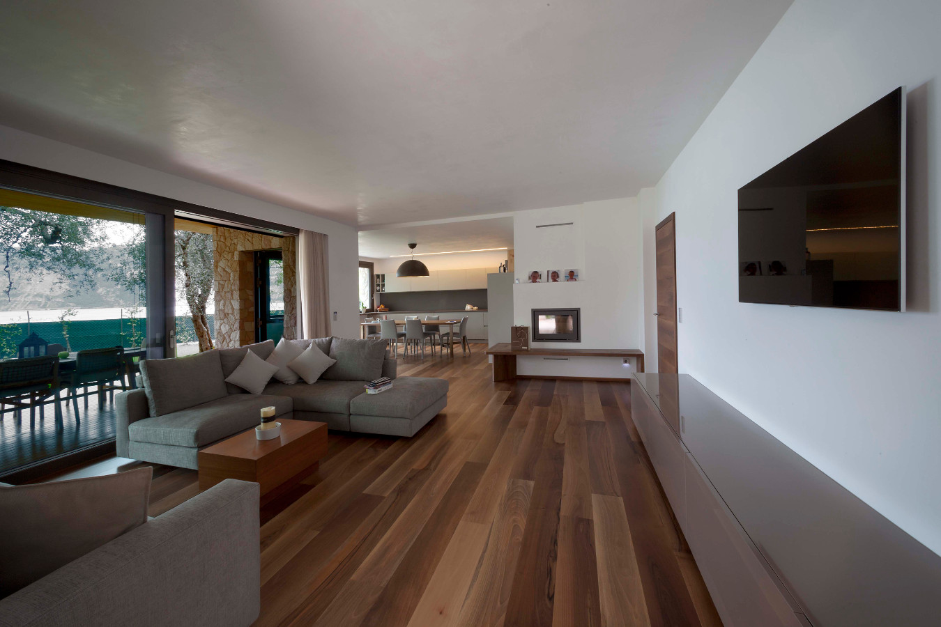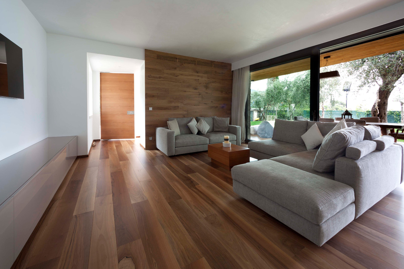 Transparentes, umweltschonendes Öl, das weder Wasser noch Lösungsmittel enthält: 0% VOC. Es kann wiederverwendet werden und ist leicht zu warten, und wird mit den Jahren besser. Das Öl gibt den Boden und den Verkleidungen ein Wärmegefühl. Auf Wunsch können wir das Produkt mit gefärbtem Öl liefern.