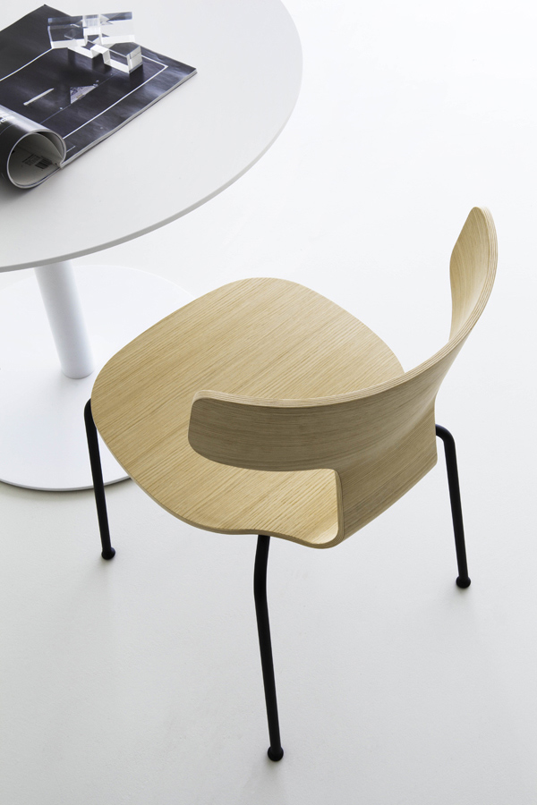 Sitzfläche und Rückenlehne aus formgepresstem Multiplex in verschiedenen Ausführungen mit unterschiedlicher Materialstärke für mehr Flexibilität.