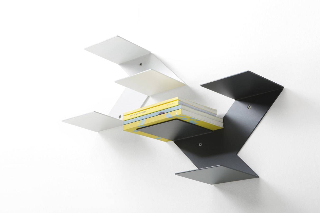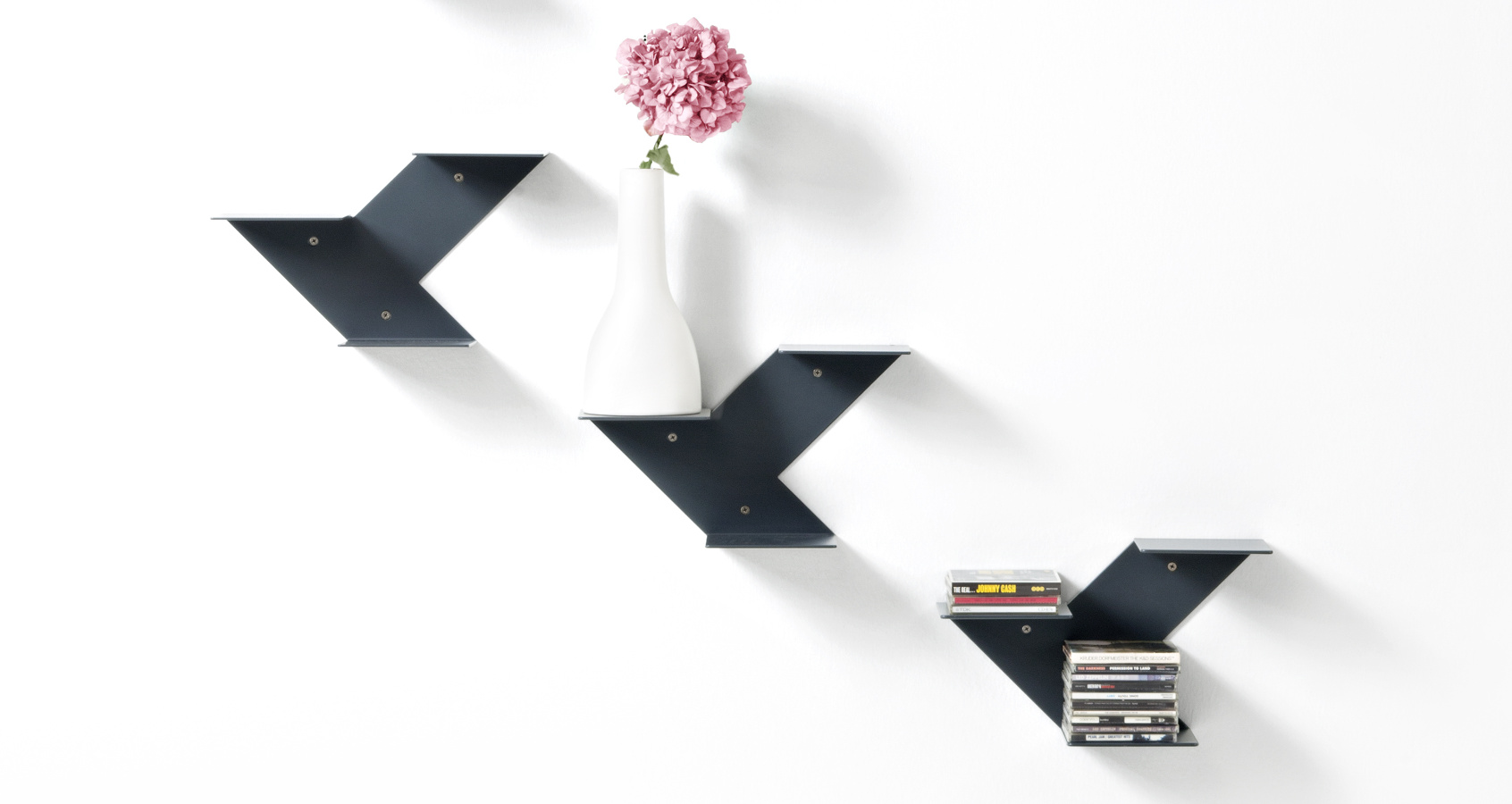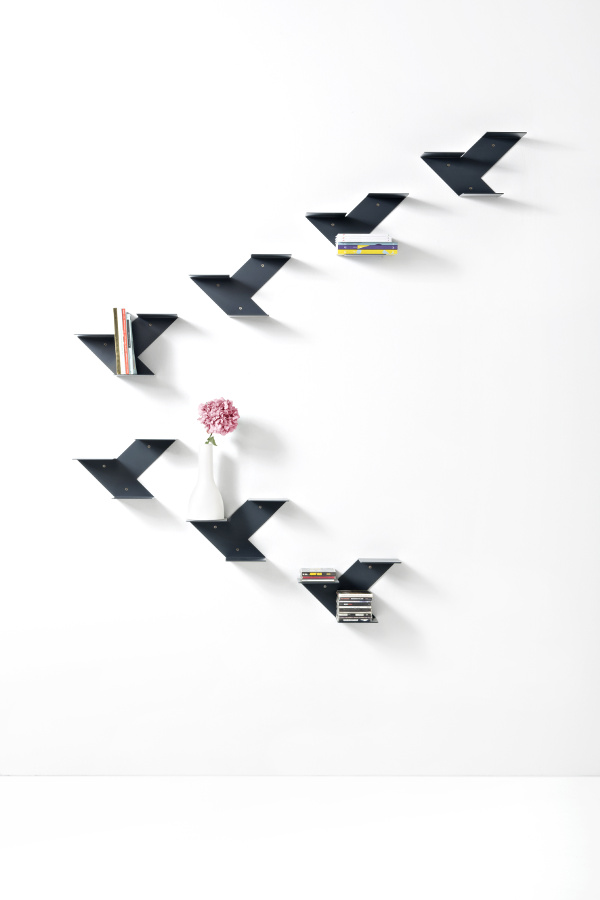 Elemente, die eine multifunktionale Wohnlandschaft skizzieren: Tische und Kaffeetische in verschiedenen Höhen und Größen, Ablage- und Stauelemente wie Regalbretter und modulare Bücherregale, kleine farbenfrohe Objekte mit wandelbarer Identität.