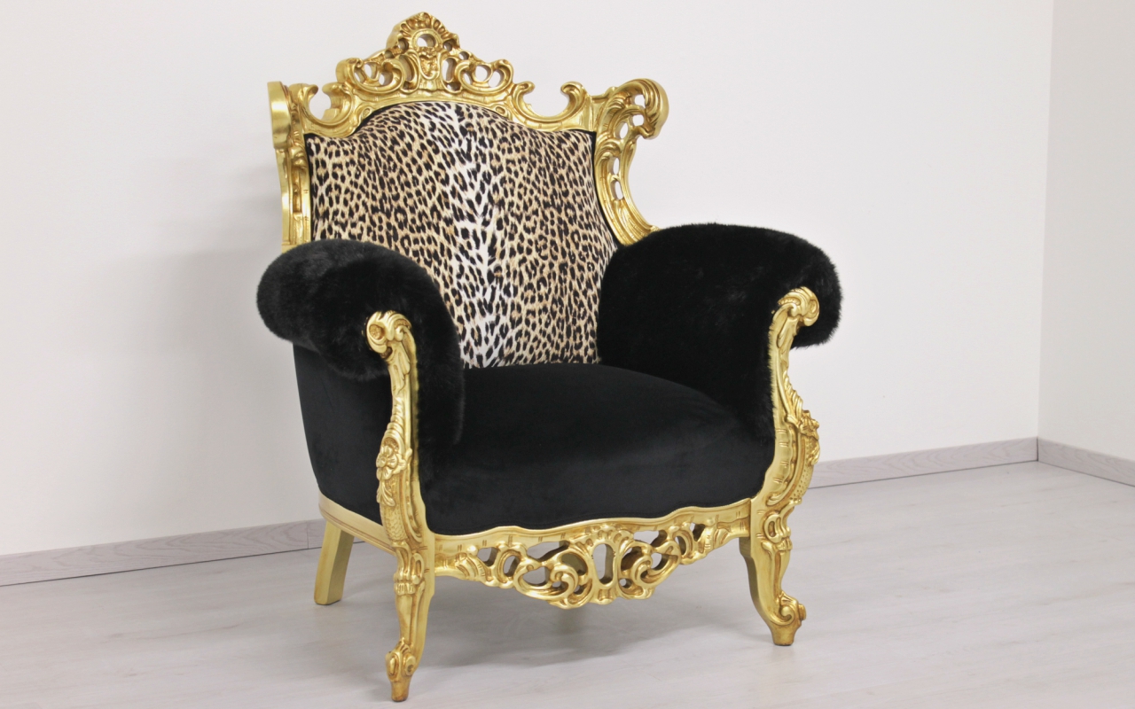 Thron: B. 100 x T. 86 x H. 140 cm.