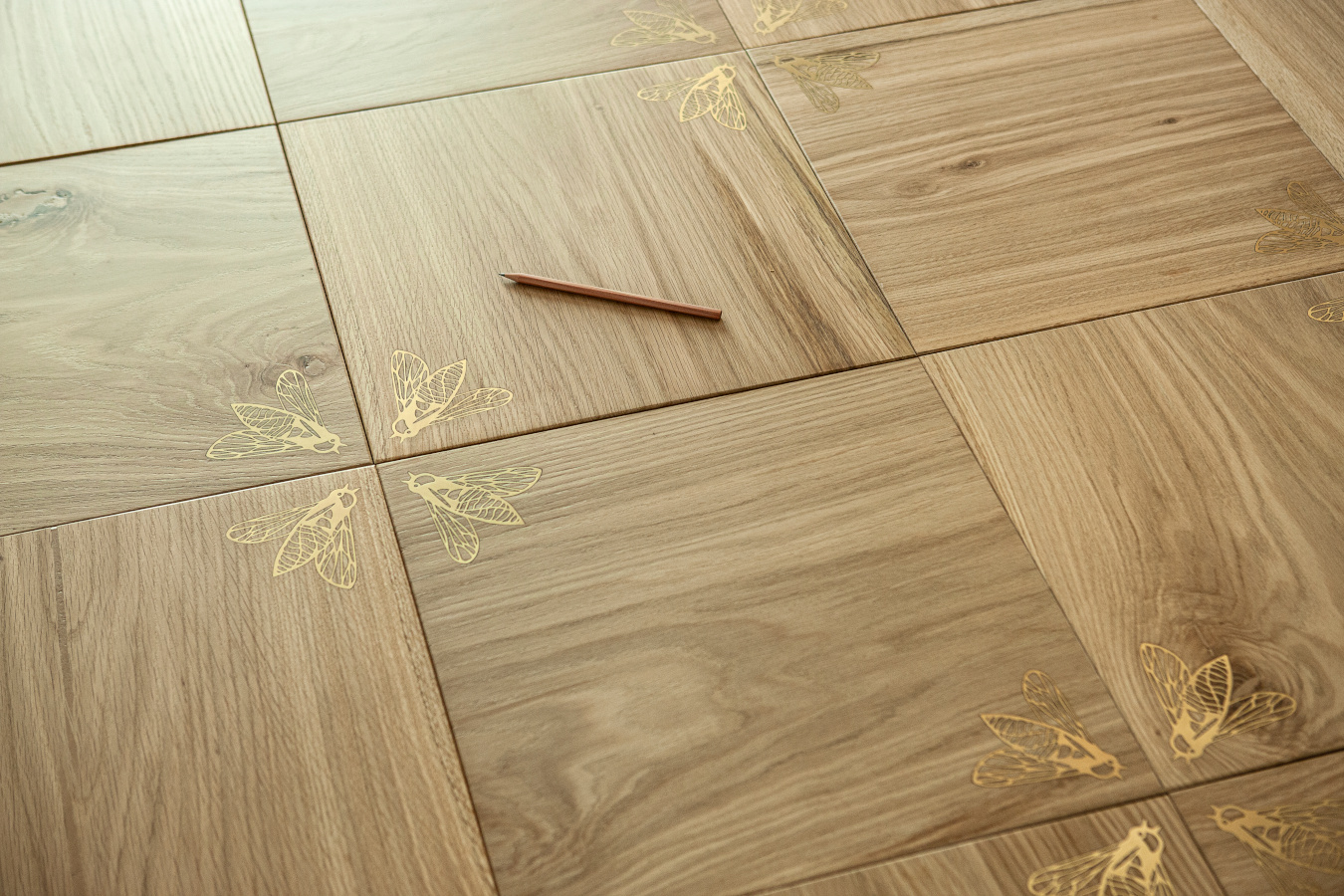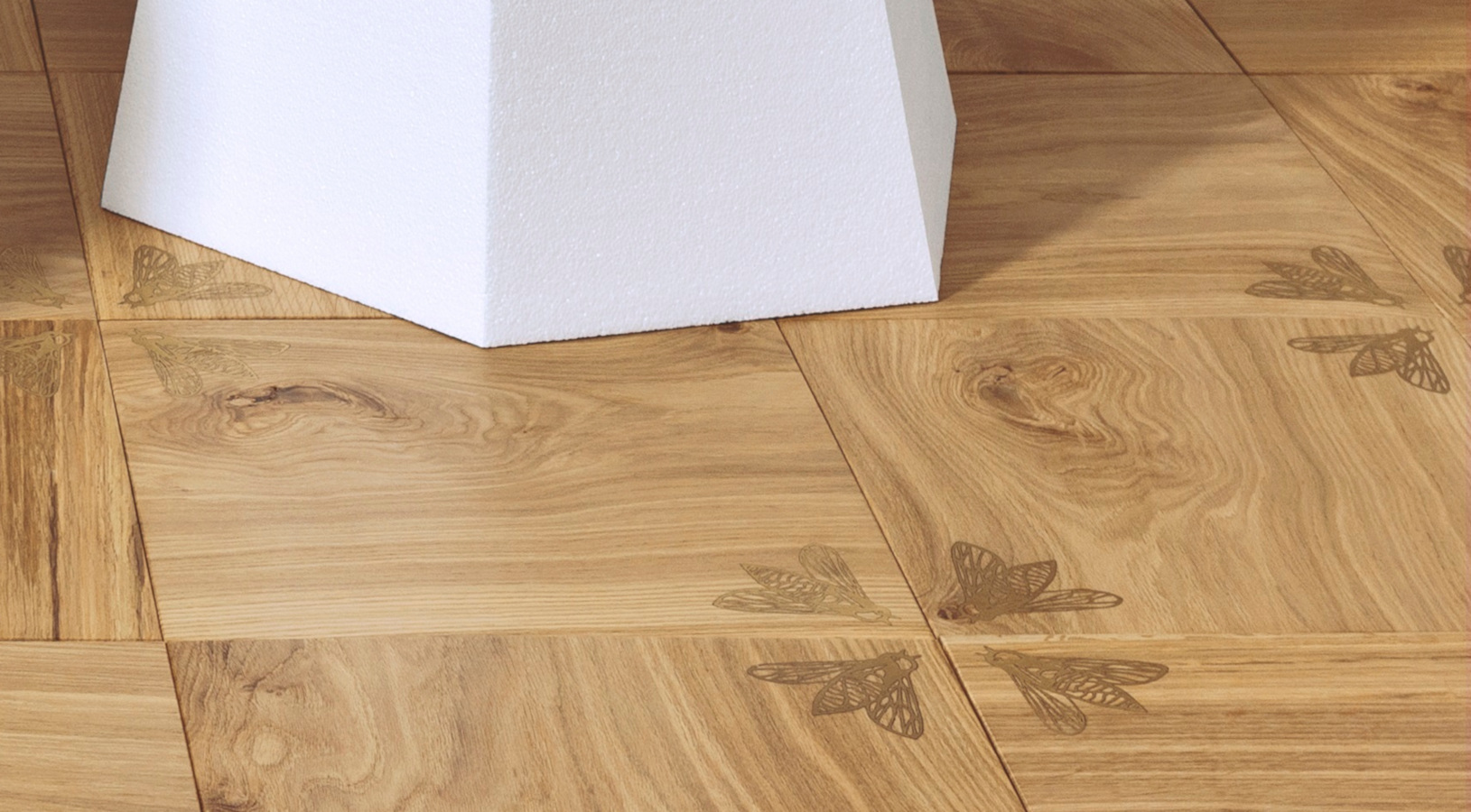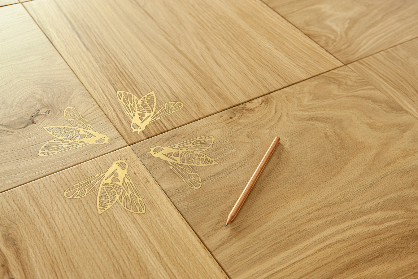 3-lagiger Holzboden mit 6 mm Edelholz und doppelt gekreuzter Fichtenstütze. Gebürstet, abgeschrägt, auf Wasserbasis lackiert.