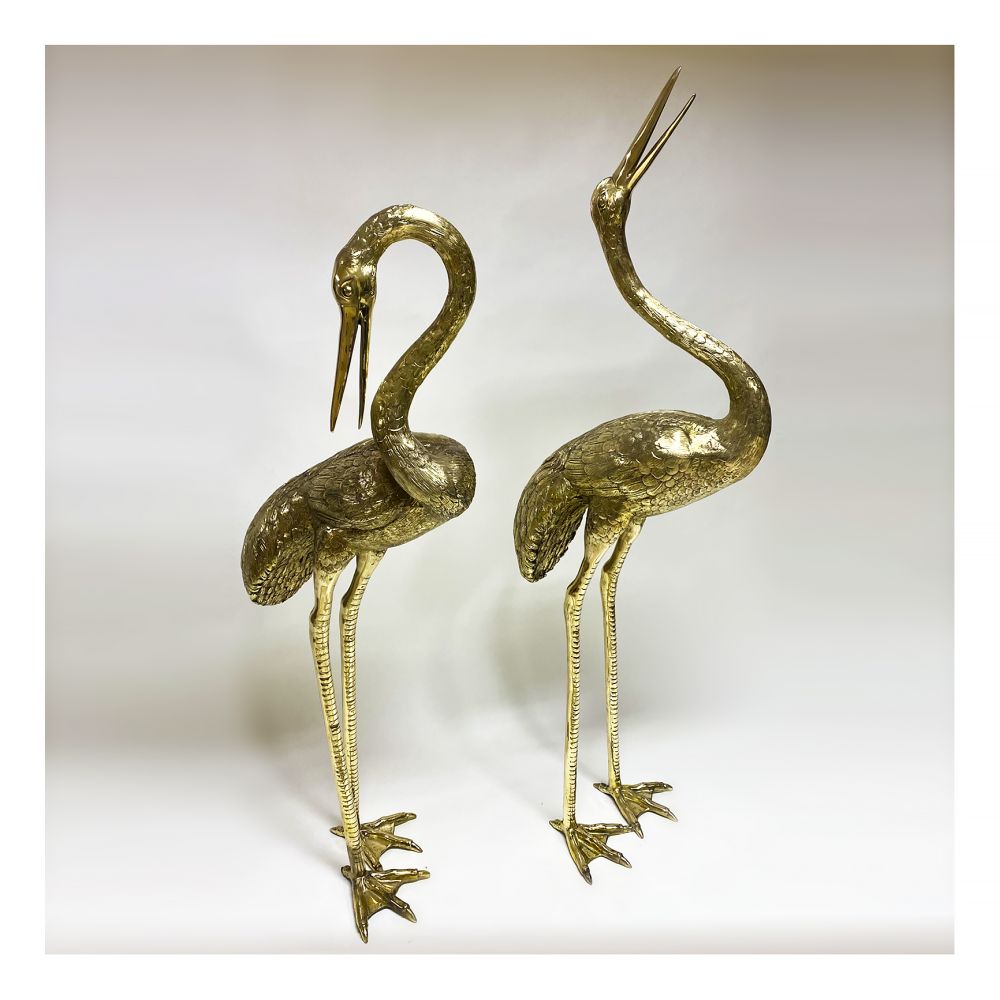 Flamingopaar doppel Moderne Statue aus goldener Bronze Kunsthandwerk Art Deko