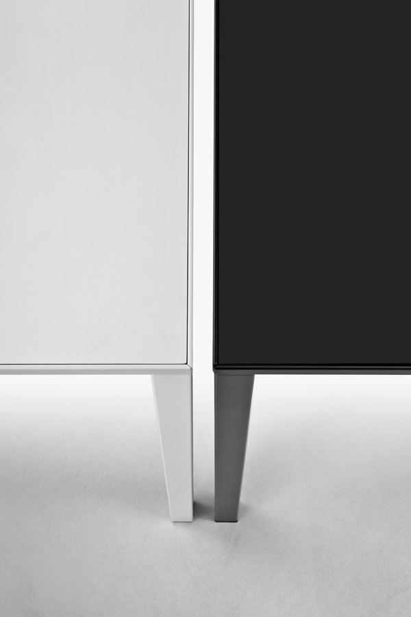 Tischplatte aus Melamin, weiß oder schwarz.
