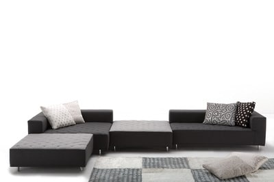 Programm von Modularen- und Einzelsitzungen mit unterschiedlichen Tiefen. Ein Ort, um sich zu treffen, zu reden, sich auszuruhen… Wesentliche Linien und nüchternen Stil, bereichert durch weiche Kissen und eine abnehmbare Steppdecke auf der Sitzfläche.