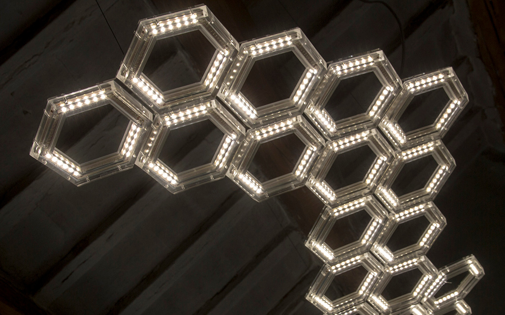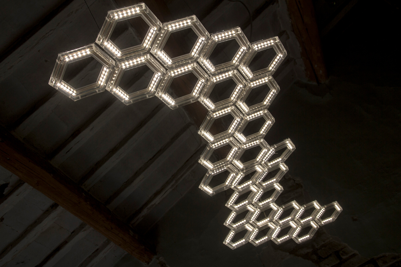 Gemeinsamkeiten? Modularität (Kennzeichen der Kriladesign-Produktion); aus dem Basismodul werden mit natürlicher Kontinuität alle anderen Modelle entwickelt. Ob an der Wand, an der Decke, auf dem Boden oder auf dem Tisch, weiß jedes einzelne Beleuchtungssystem wie man mit allen Umgebungen kommuniziert und dabei verbreitet es ein ausgeklügeltes, leichtes und wirkungsvolles Licht. Von der Entwicklung von flachen oder Höhenstrukturen bis hin zu sphäroidischen Formen scheint jede Idee eine Einladung dazu zu sein, mit der Fantasie zu wandern… ein Netzwerk, ein Planet oder eine Blume, die auf diesem Planeten gesammelt wurde; leuchtende Vielfalt, die die Unendlichkeit des Weltalls in einem Raum einschließt.
