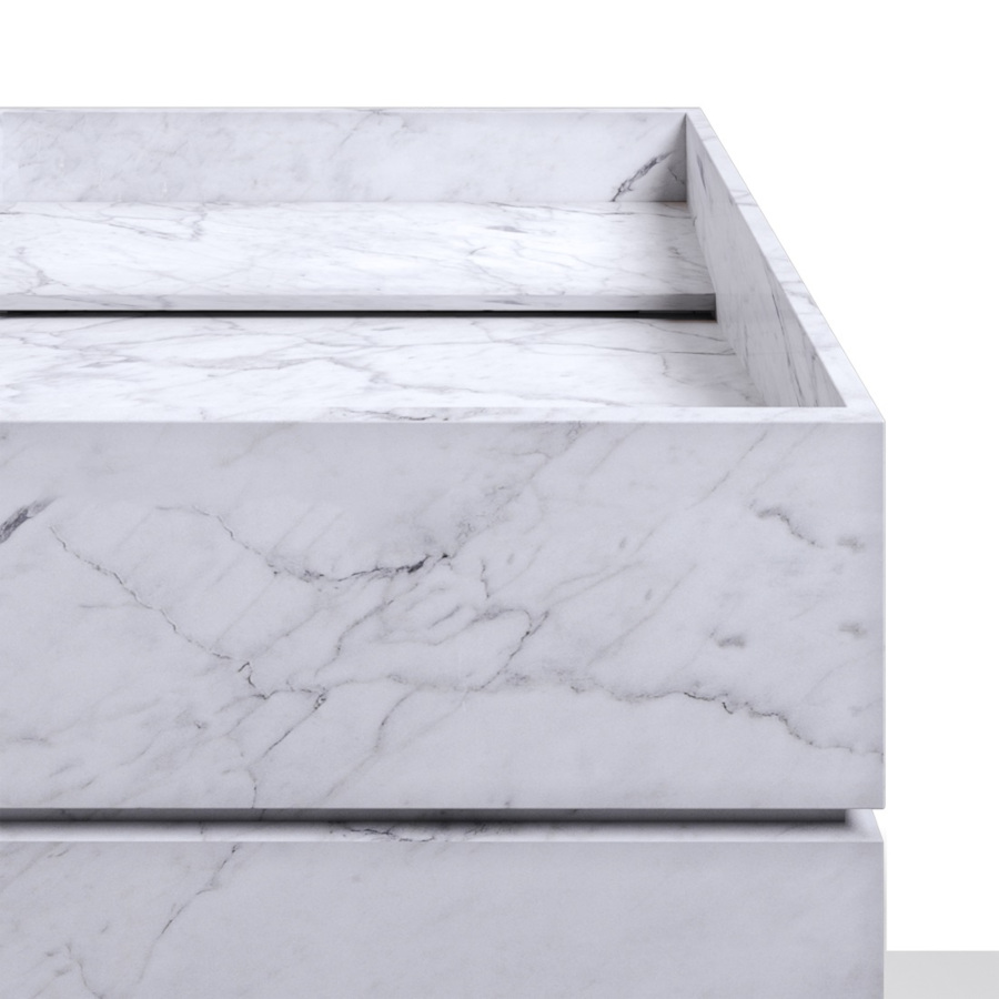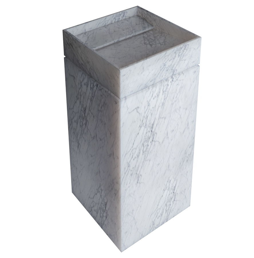 Abmessungen: 40 x 40 x H 85 cm. Gewicht: 95 kg. Material: Weißer Carrara-Marmor oder schwarzer Lavagna-Schiefer.