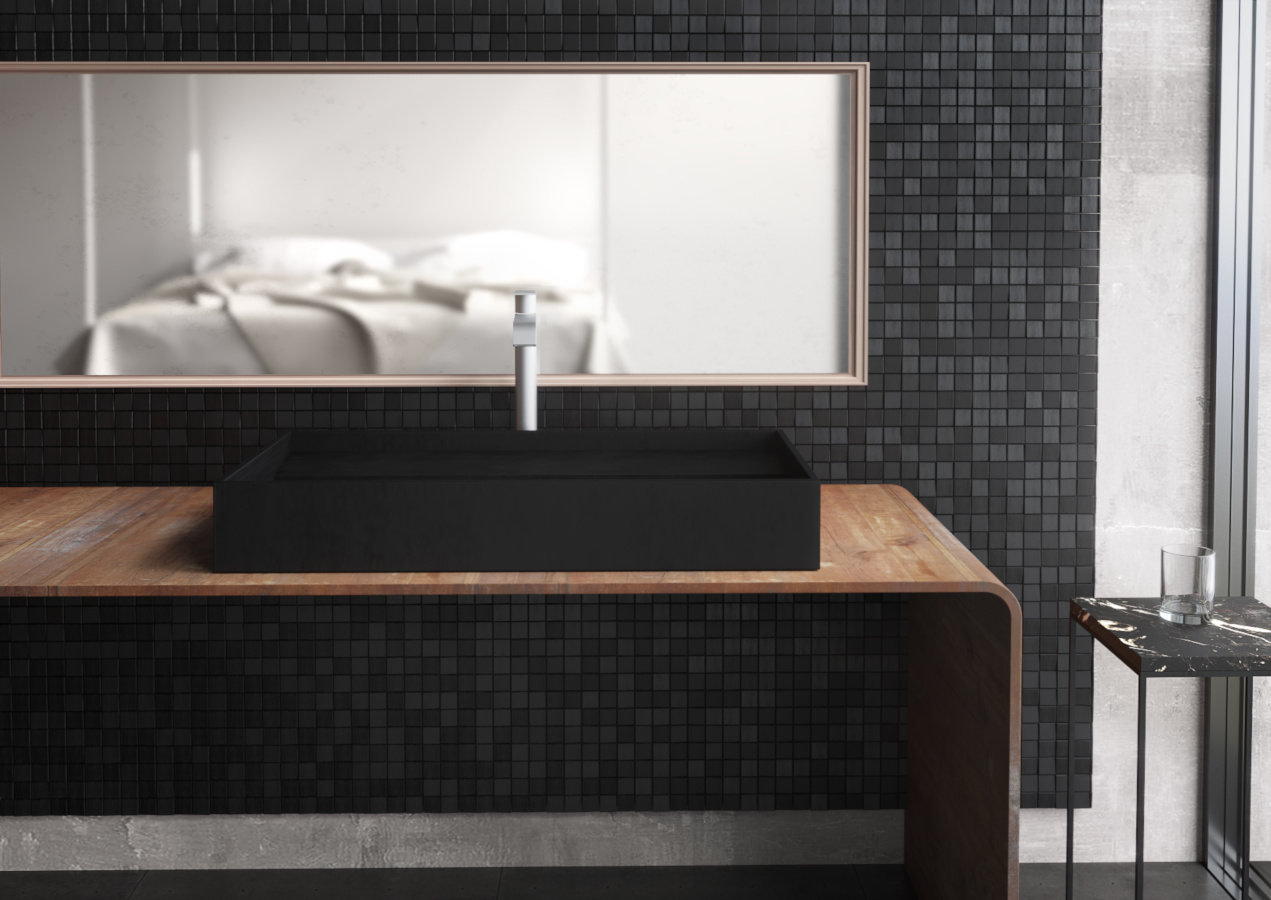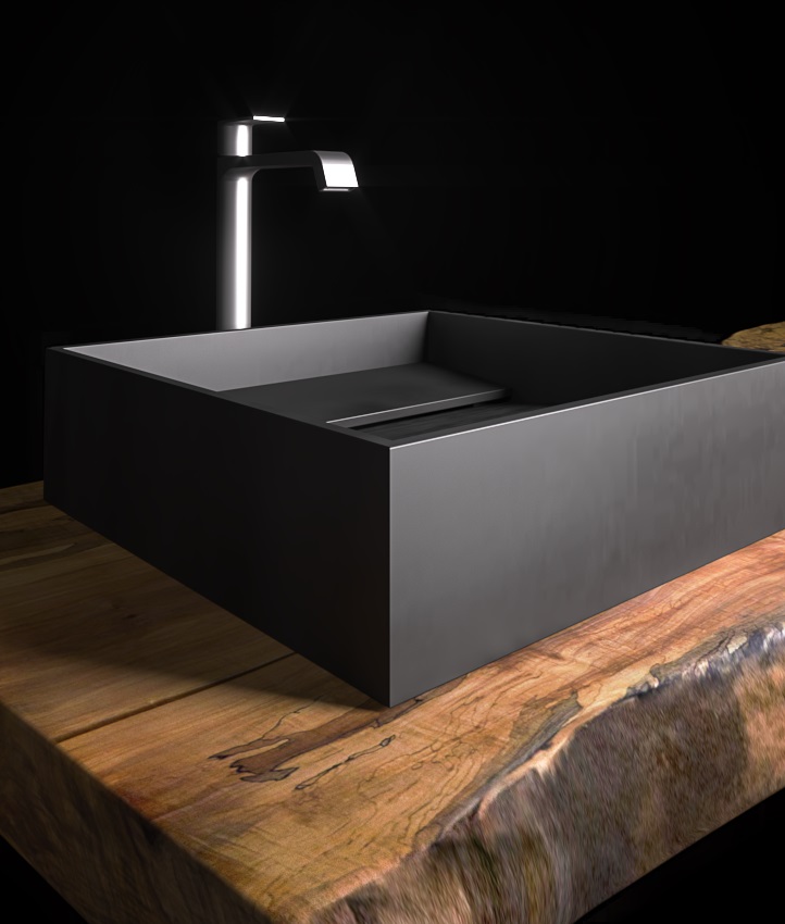 Die Größe macht es anpassungsfähig an jede Umgebung: auf einer Oberseite oder an der Wand, versehen mit Abfluss aus Edelstahl und optionalem Siphon und Armaturen. Der Wunsch des Designers ist es, mit einfachen, aber leidenschaftlichen Gesten das Auge auf sich zu ziehen und Umgebungen zu bereichern.