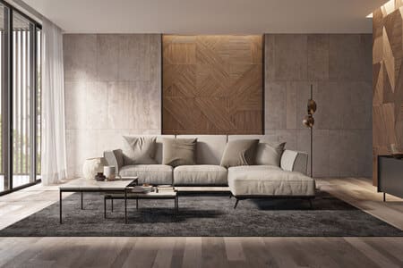 Die varianten- und farbenreichen Polstermöbel definieren die Volumen von INSIDE mit einem raffinierten Zuschnitt.