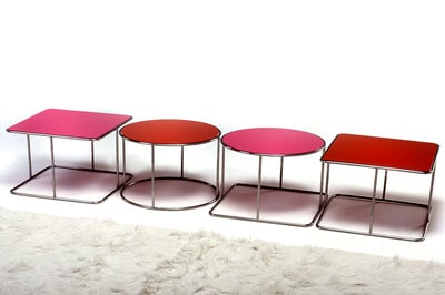 Serie von Beistelltischen in drei Formen. Sie unterscheiden sich in: Jolly round – Jolly square – Jolly mix