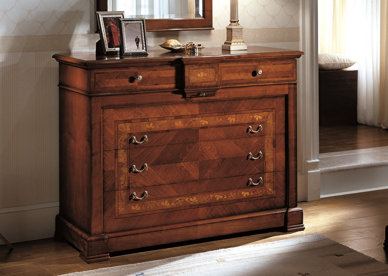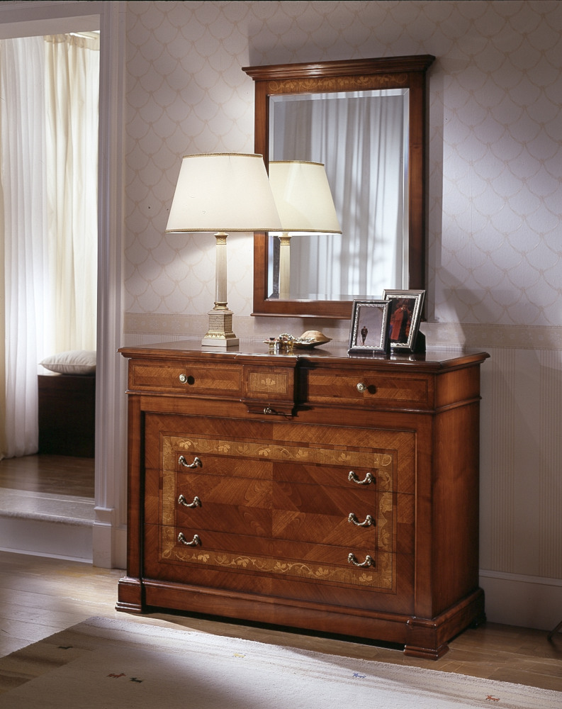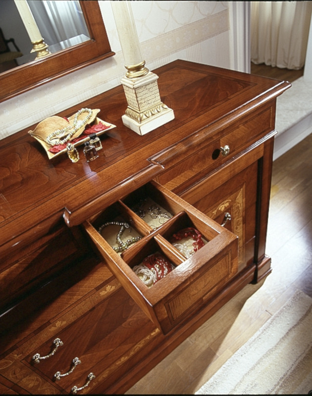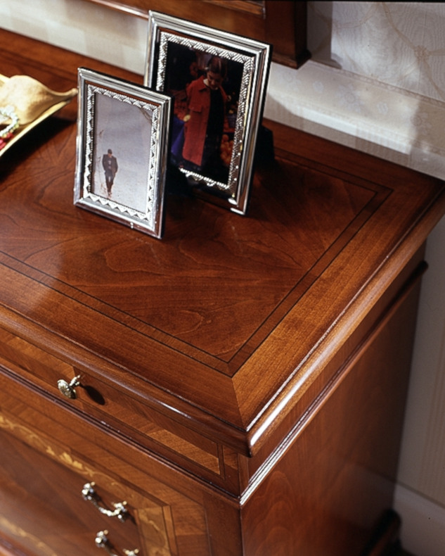 Wahl des Holzes: Es werden unterschiedliche Essenzen verwendet, die jeweils die Einrichtungselemente aufwerten, die durch bestimmte Inlays und Schnitzereien bereichert werden. Die Verwendung von Massivholz erster Qualität gewährleistet über die Jahre eine spürbare Qualität und Haltbarkeit.