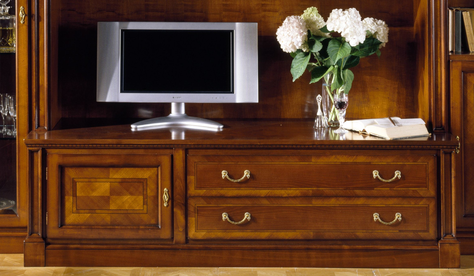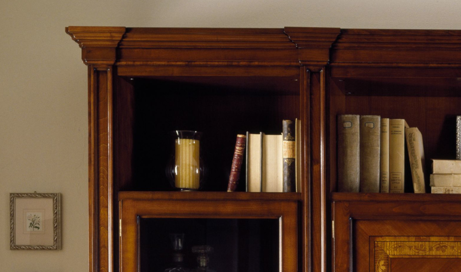 Wahl des Holzes: Es werden unterschiedliche Essenzen verwendet, die jeweils die Einrichtungselemente aufwerten, die durch bestimmte Inlays und Schnitzereien bereichert werden. Die Verwendung von Massivholz erster Qualität gewährleistet über die Jahre eine spürbare Qualität und Haltbarkeit.