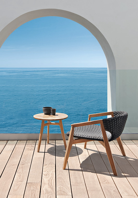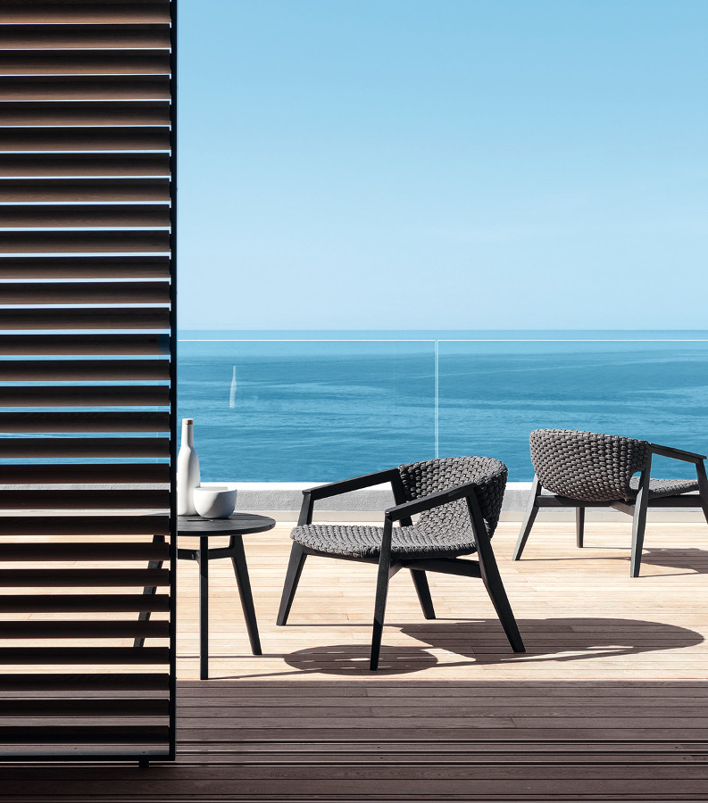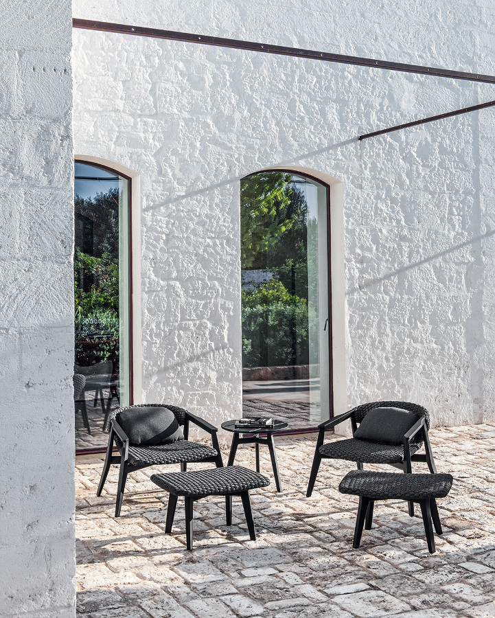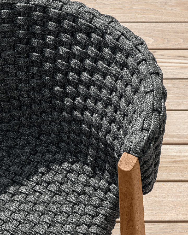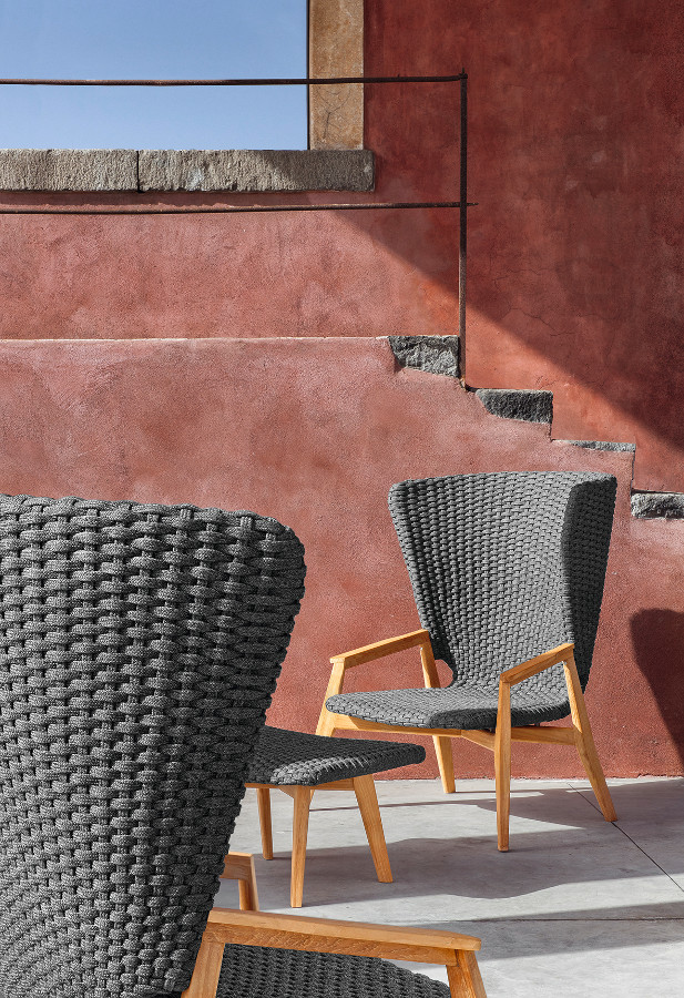 Geboren aus der Zusammenarbeit zwischen Ethimo und Designer Patrick Norguet ist die Knit Kollektion eine originelle Synthese von Schönheit und Funktionalität, mit Aufmerksamkeit auf jedes Detail geachtet wird: von dem Holzrahmen aus Teak oder Mahagoni schwarzen Tischen und Stühlen, das Gewebe aus Stuhl, in Kunstfaserseil, elegant und perfekt für den Einsatz im Frei