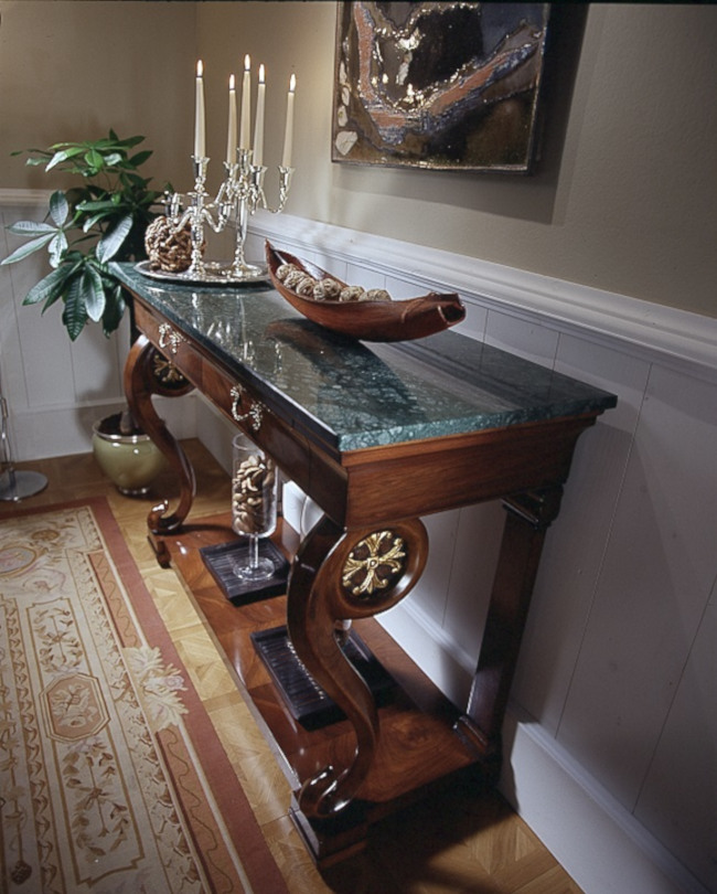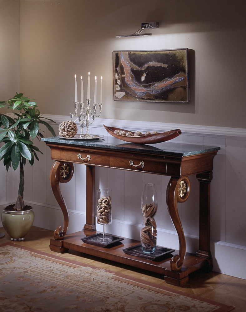 Wahl des Holzes: Es werden unterschiedliche Essenzen verwendet, die jeweils die Einrichtungselemente aufwerten, die durch bestimmte Inlays und Schnitzereien bereichert werden. Die Verwendung von Massivholz erster Qualität gewährleistet über die Jahre eine spürbare Qualität und Haltbarkeit.