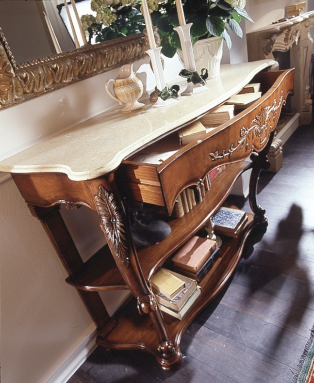 Wahl des Holzes: Es werden unterschiedliche Essenzen verwendet, die jeweils die Einrichtungselemente aufwerten, die durch bestimmte Inlays und Schnitzereien bereichert werden. Die Verwendung von Massivholz erster Qualität gewährleistet über die Jahre eine spürbare Qualität und Haltbarkeit.