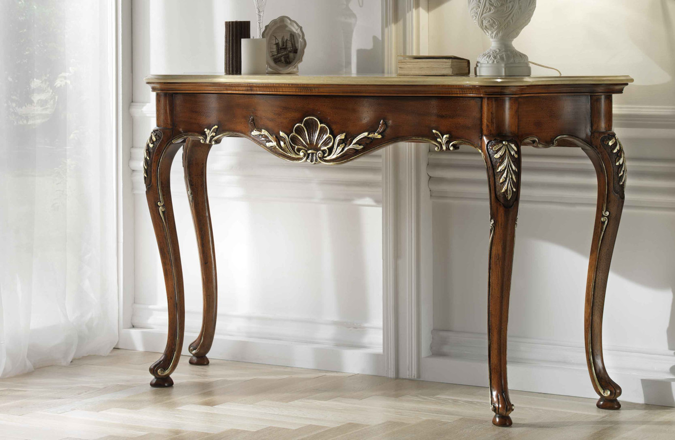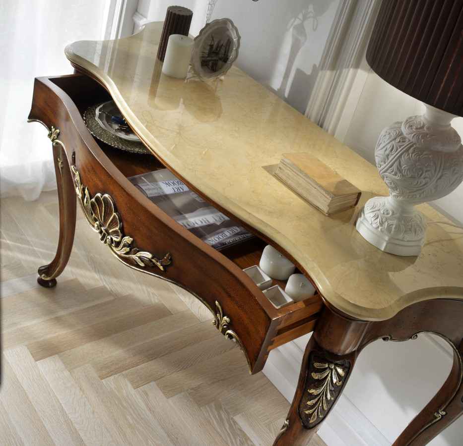 Wahl des Holzes: Es werden unterschiedliche Essenzen verwendet, die jeweils die Einrichtungselemente aufwerten, die durch bestimmte Inlays und Schnitzereien bereichert werden. Die Verwendung von Massivholz erster Qualität gewährleistet über die Jahre eine spürbare Qualität und Haltbarkeit.