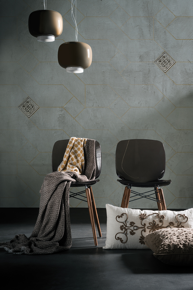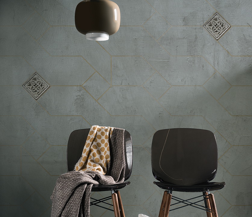 Alle grafischen Muster sind auf Vinylpapier und EQ-Dekor (die Verkleidung, die aus der Zusammenarbeit mit Mapei entstanden ist) druckfähig. Diese Materialien haben bessere Leistungen und Widerstandsfähigkeit als Zellulose.