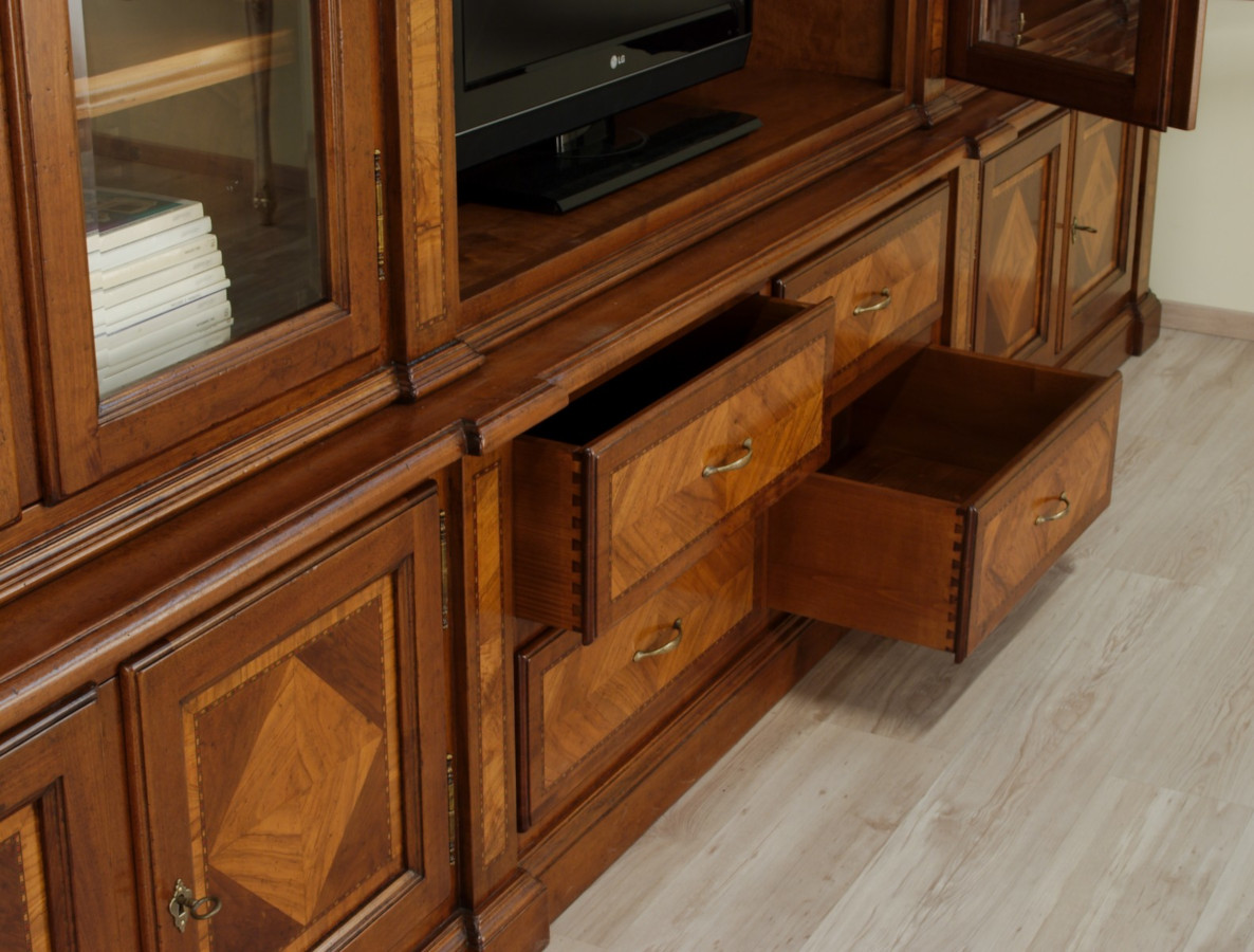 / LB43 – Bücherregal-TV-Ständer aus massivem Nussbaum