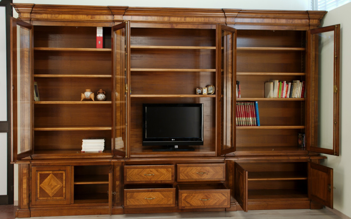 LB43 – Bücherregal-TV-Ständer aus massivem Nussbaum