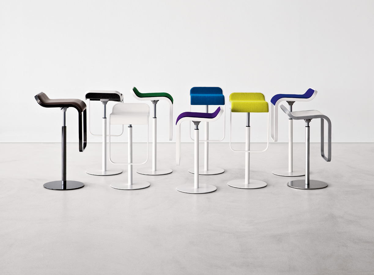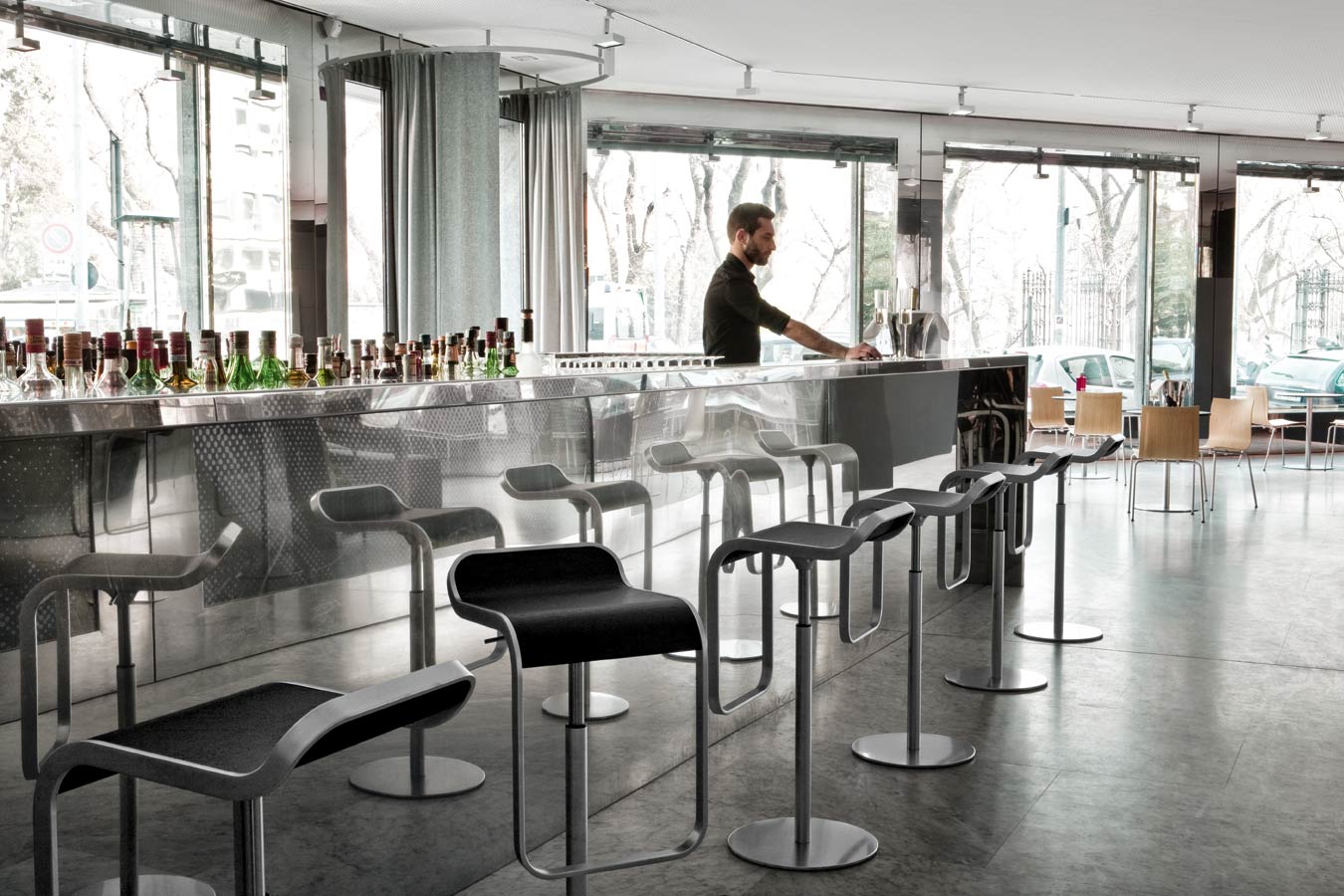 LEM gibt es auch mit „Swing-back“-Mechanismus für den Sitz und Basis Ø 20 cm zur Bodenbefestigung, besonders geeignet für Bars und andere öffentliche Räume.