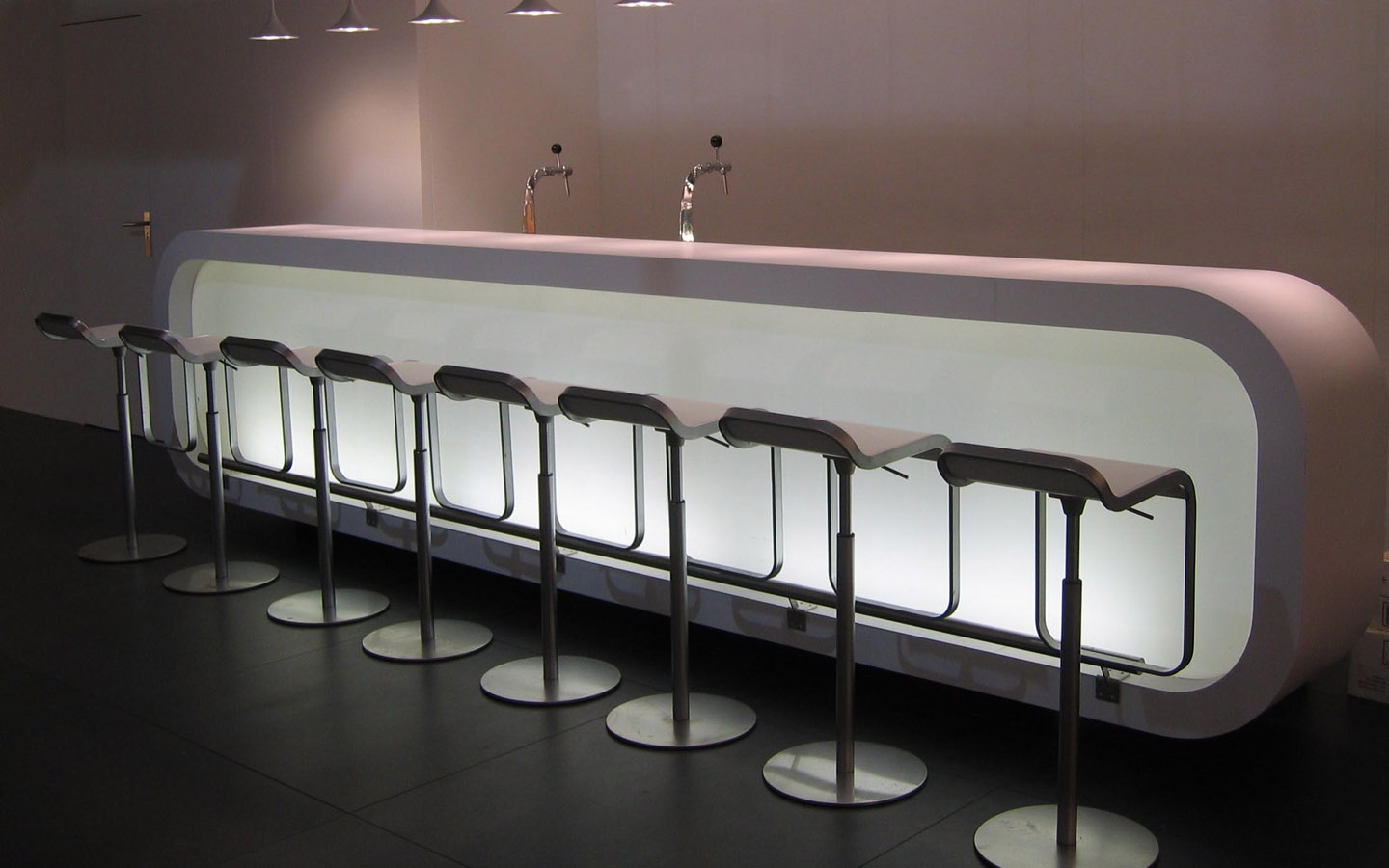 Drehbarer Barhocker, mit Höhenverstellung durch Gasdruckfeder oder fixer Höhe.
