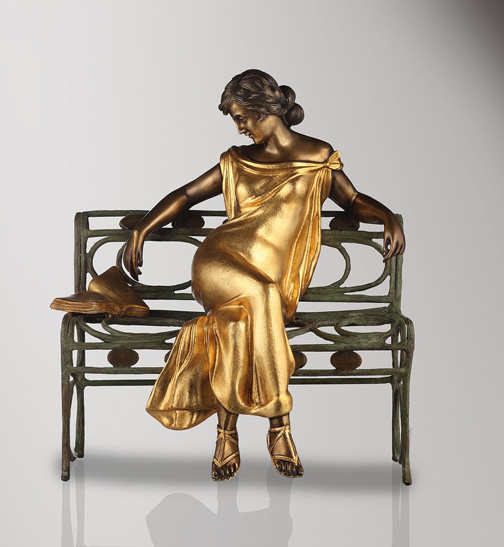 MARIA LOPEZ eine klassische sitzende bronzefigur menschfiguren aus Bronzepatina und Blattgold