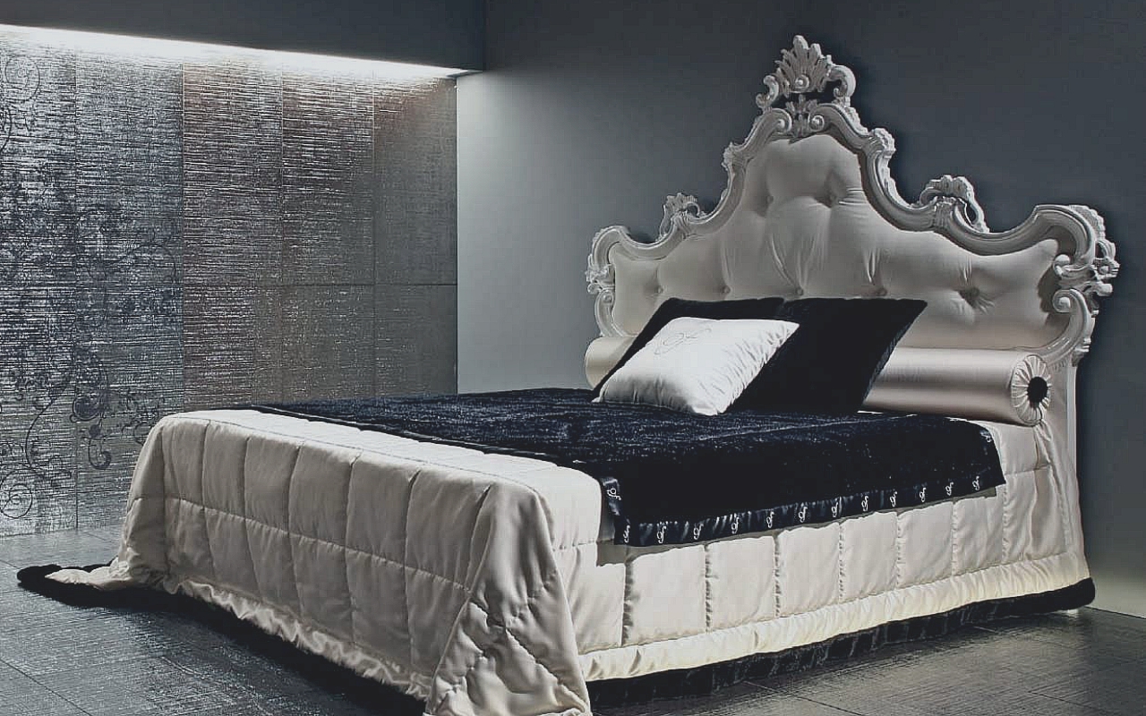 Bettgestell in Holz silberen/vergoldet/lackiert oder in Polsterholz. Ferfugbar auch als Boxbett