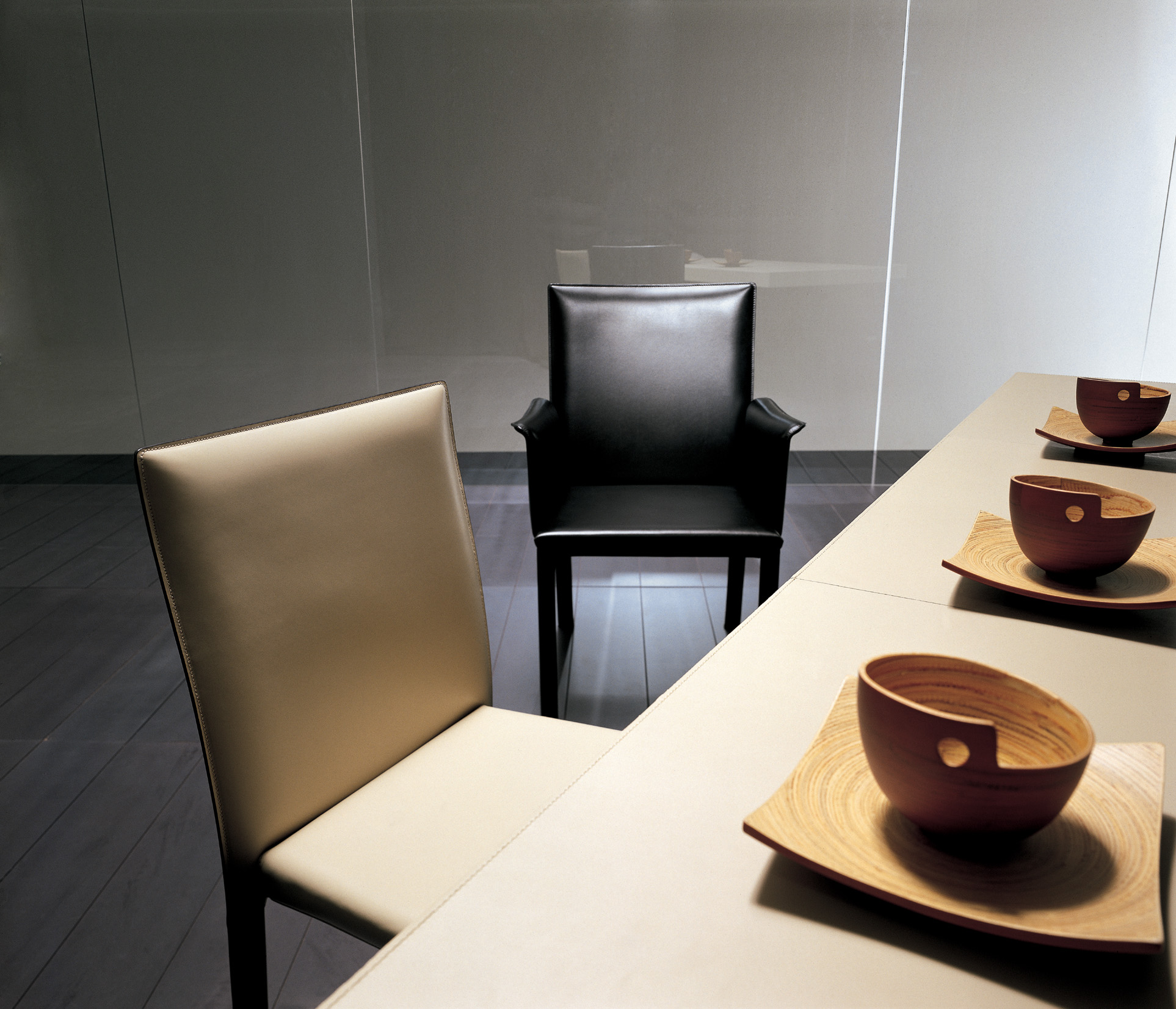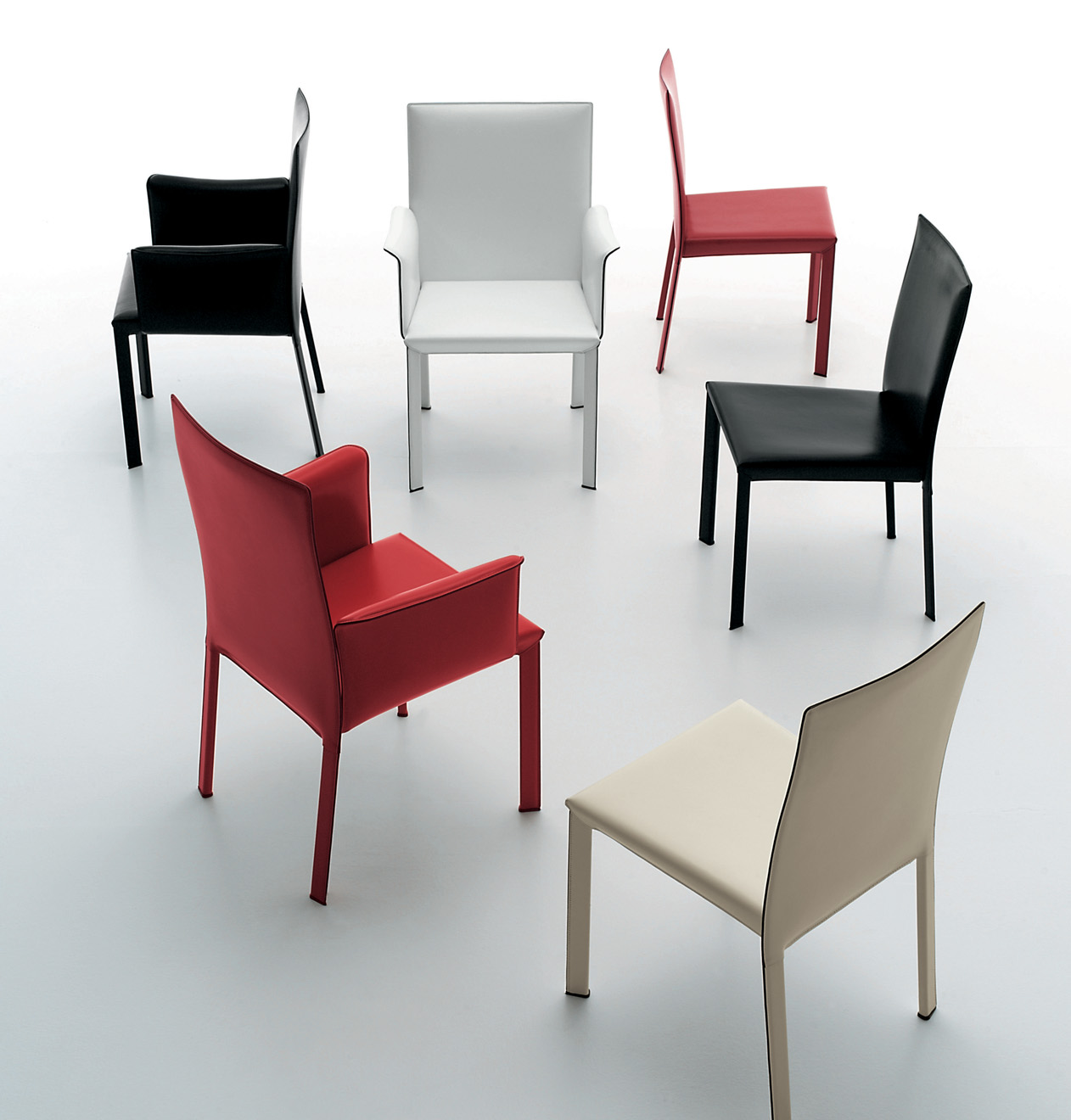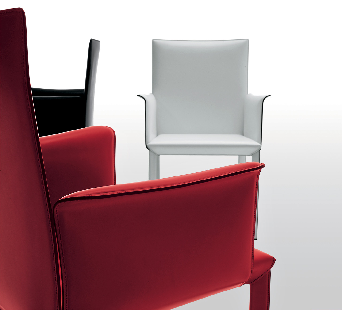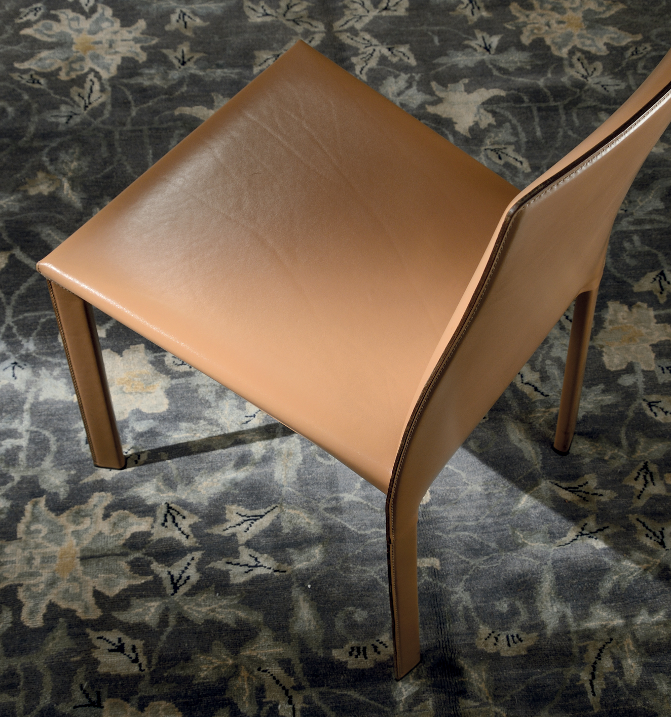 Die Traegendestruktur besteht aus Metallroehrenfoermig; ein Nylonsteifleinen, daß beim unverformbaren, FCKW-freien PUR-Platt (mit Dichte 75kg/m³) erweichen ist, versichert den Halter. Der Sessel ist ganz mit Leder bezogen.