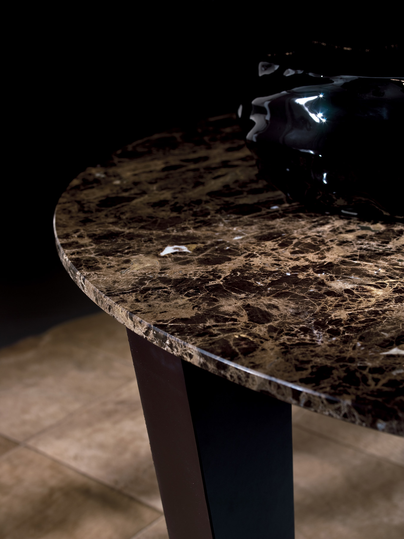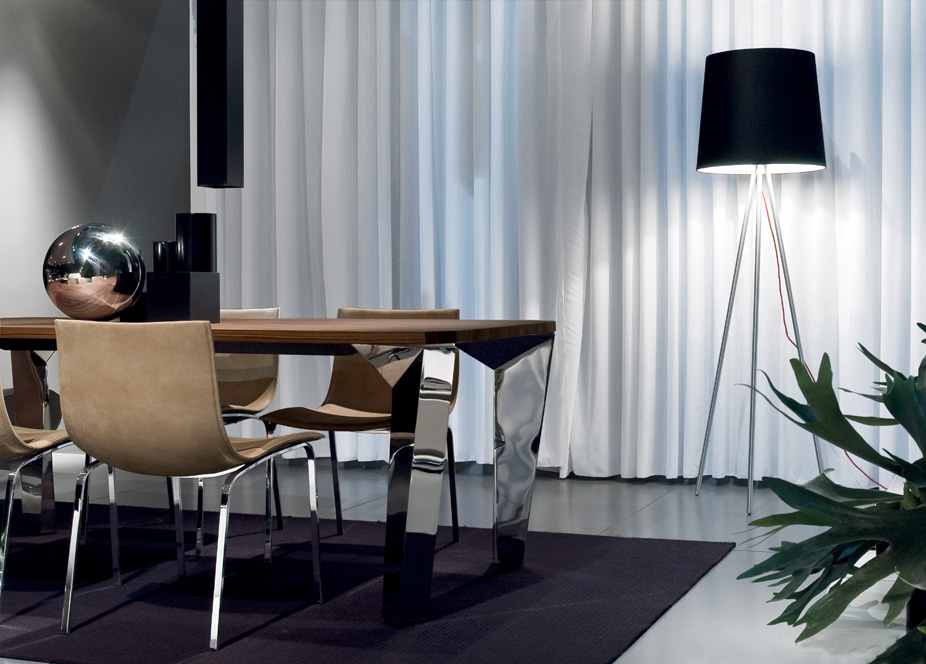 Es gibt 3 verschiedenen vorhandene Ausfuehrungen : schwarzes matte Walnuss-Holz genannt Wachs Effekt „, schwarzes Walnuss Holz lackiert in jeder RAL Farbe der Sammlung, lackierten verchromten Stahl oder schwarzen verchromten Stahl.