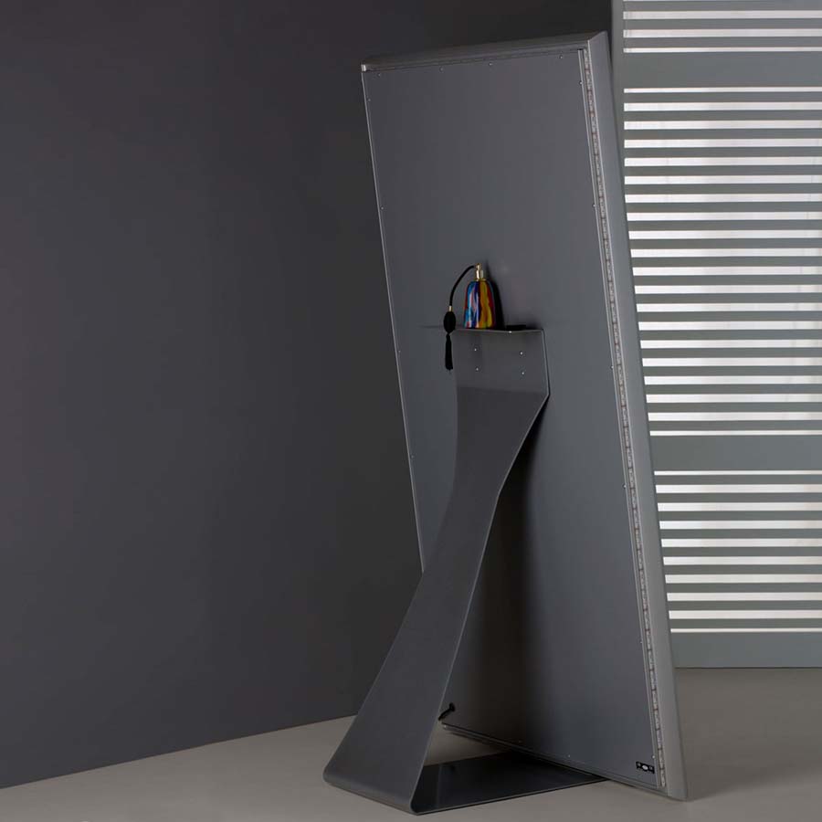 Die Spiegellinie MH ist ein ästhetisches Konzept, das um eine besondere gebogene Konstruktionsgeometrie entwickelt wurde. Sie wird auf die materielle Festigkeit des Aluminiums angewendet, wodurch dem Glas Leichtigkeit und Bewegung verliehen wird.