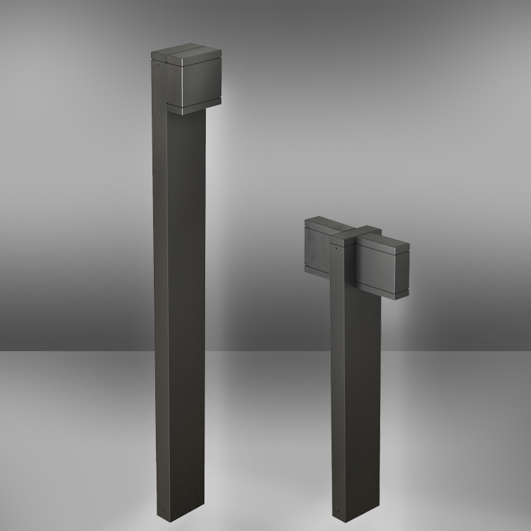 Ein einfacher Quader, mit einer minimalen Linie und kompakten Abmessungen für ein Pollersystem, das sich an den Lichtanforderungen orientiert. Leuchte, die sich in mehrere geometrische und optische Varianten entwickeln kann und somit die vielfältigen und unterschiedlichen Bedürfnisse des Lichtdesigners unterstützt. Dali dimmbar auf Anfrage gegen Aufpreis.