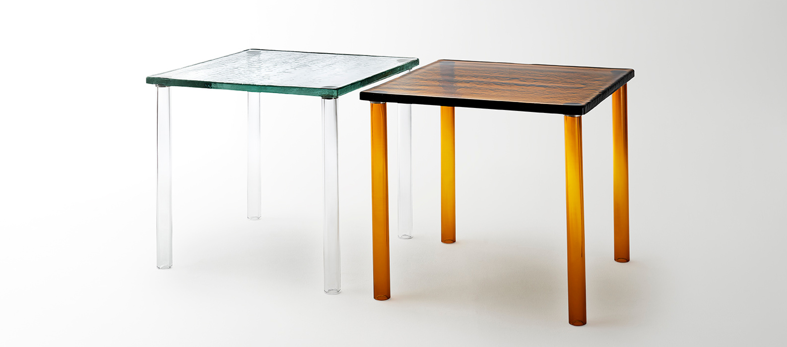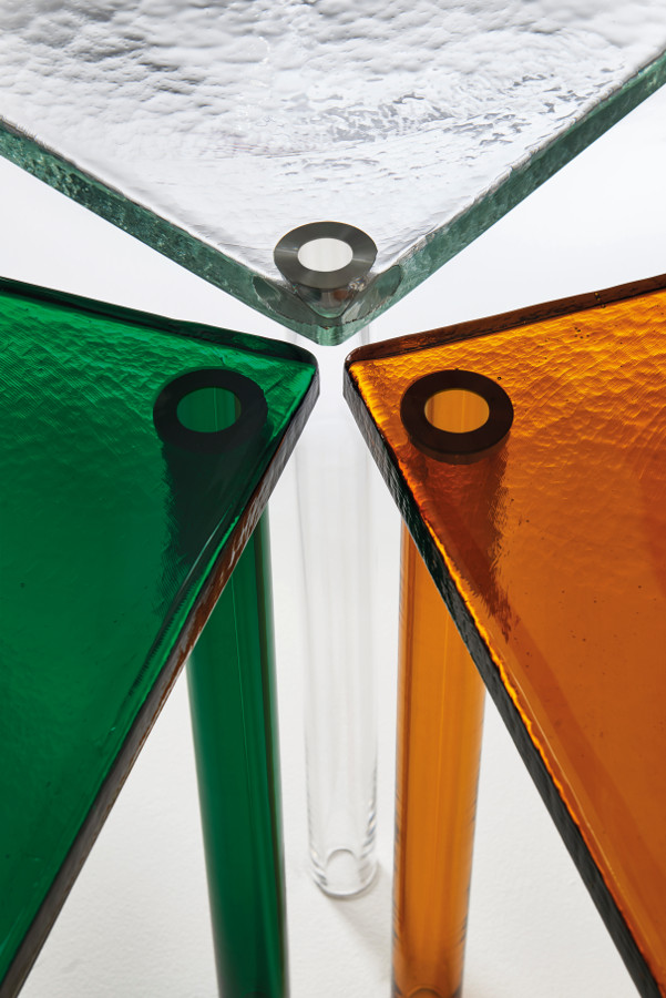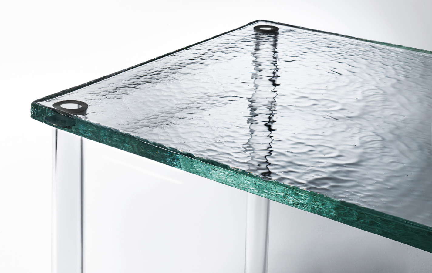 *Achtung, die Tischplatten aus gegossenem Glas weisen sichtbare Unregelmäßigkeiten, Unreinheiten und strukturelle und Farbungleichheiten, die tatsächliche Eigenschaften des Materials und kein Reklamationsgrund sind.