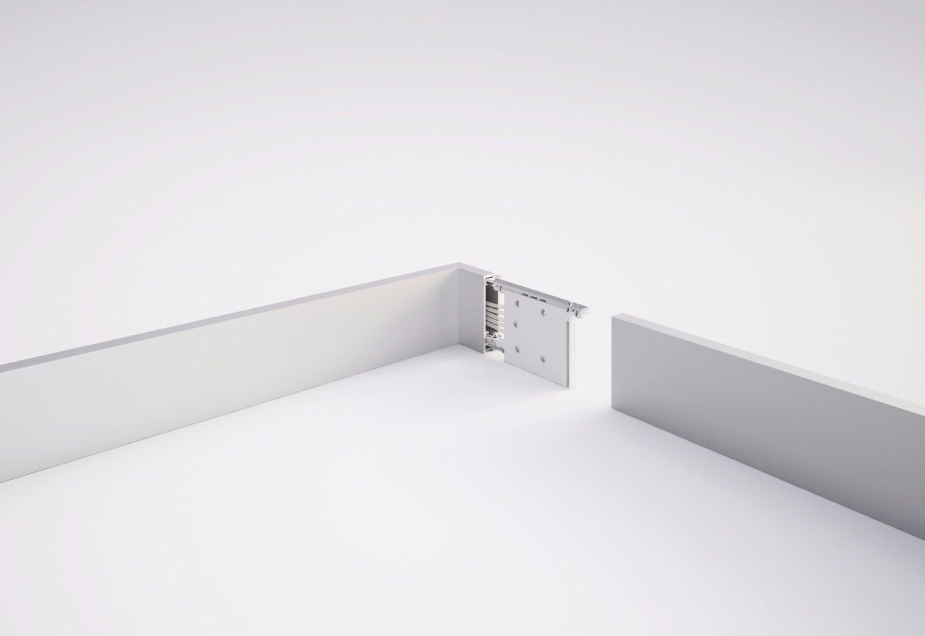 NODO besticht durch die Qualität und Strapazierfähigkeit seines edlen und recyclebaren Materials. Schiene, Ecken, Gelenke und alle Zubehörteile sind aus extrudiertem Aluminium mit eloxierter Oberfläche in zwei Farb-Varianten lieferbar: satiniertes Silber, glänzendes Silber und Weiß.
