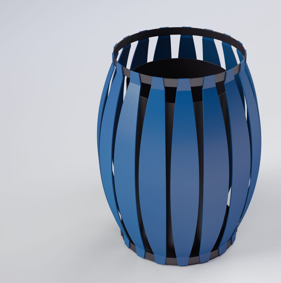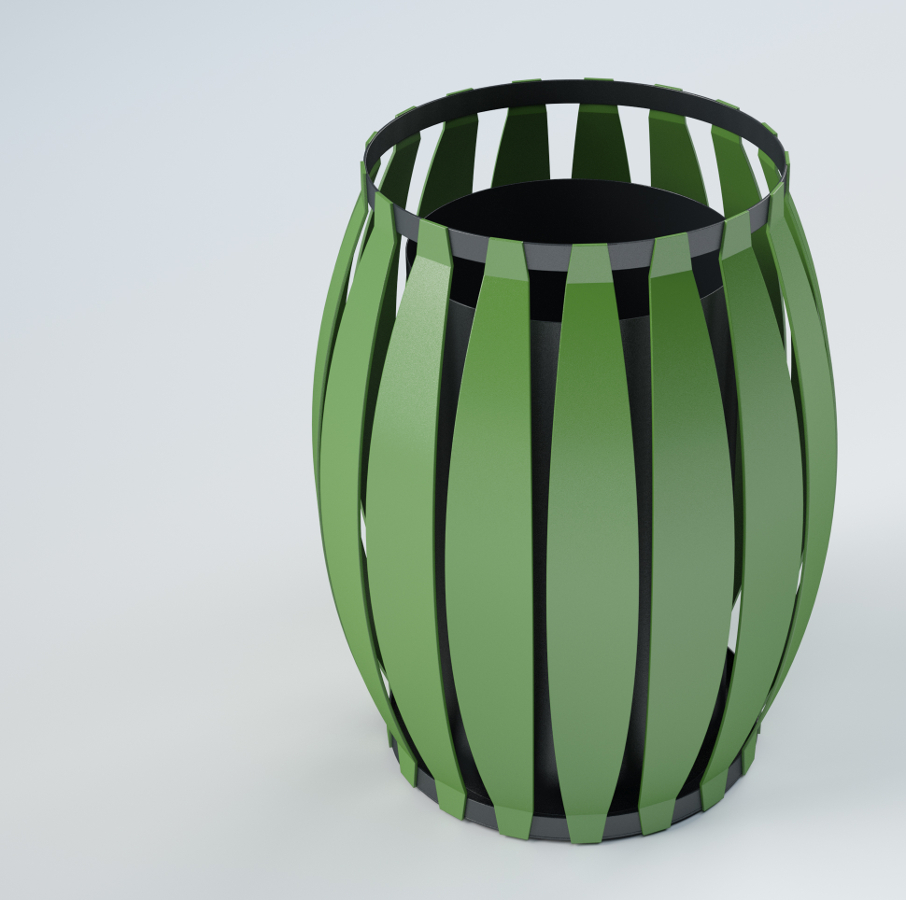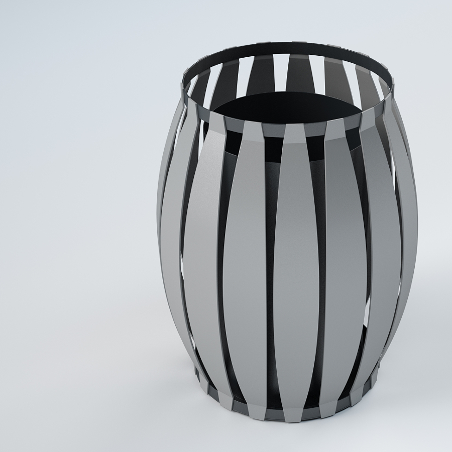 COMPOSITION: – bin in steel, with 17 plates ,laser cutting,bent,and welt on top ring,and base plate. – AISI 304 stainless steel screws.