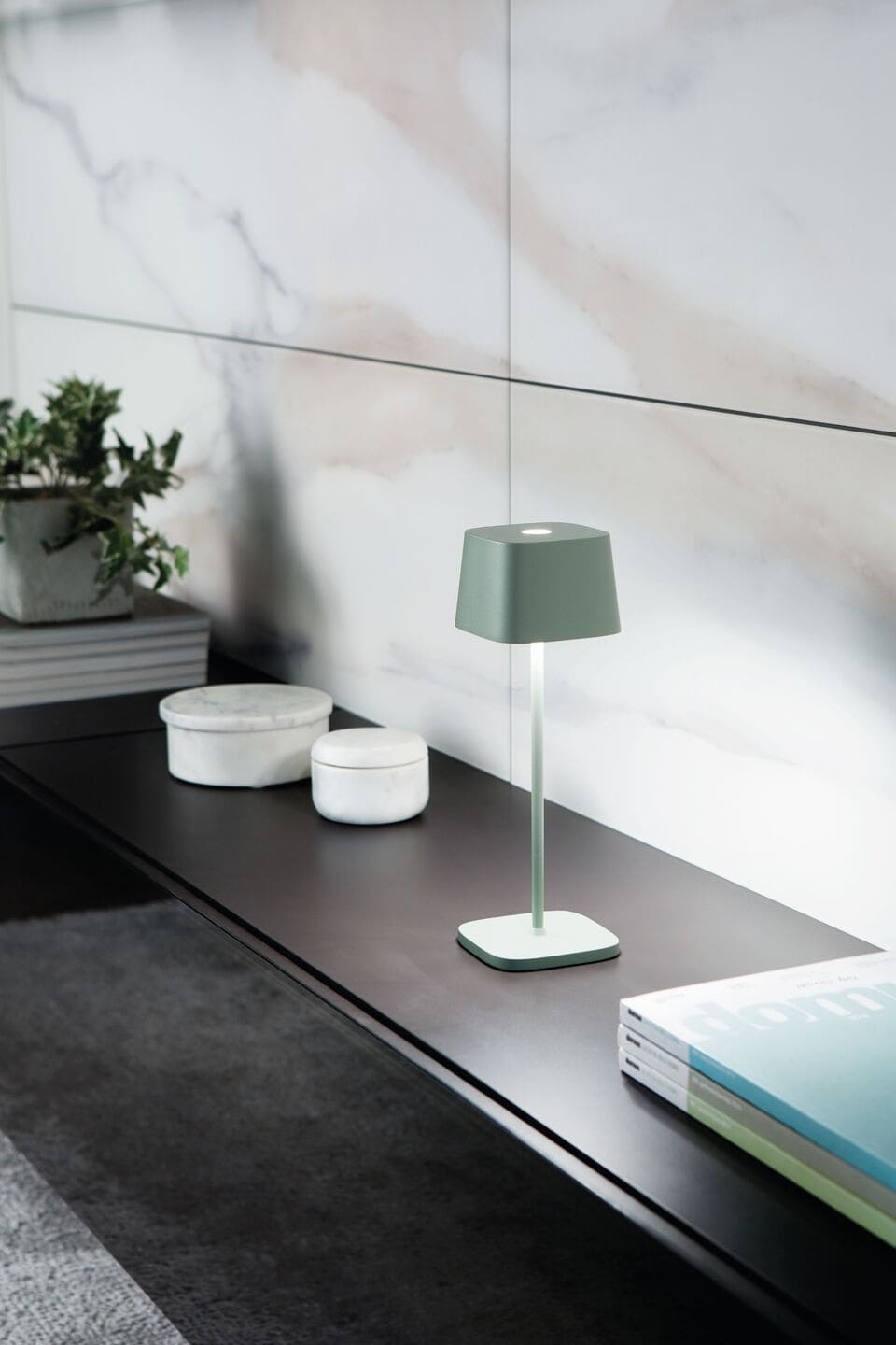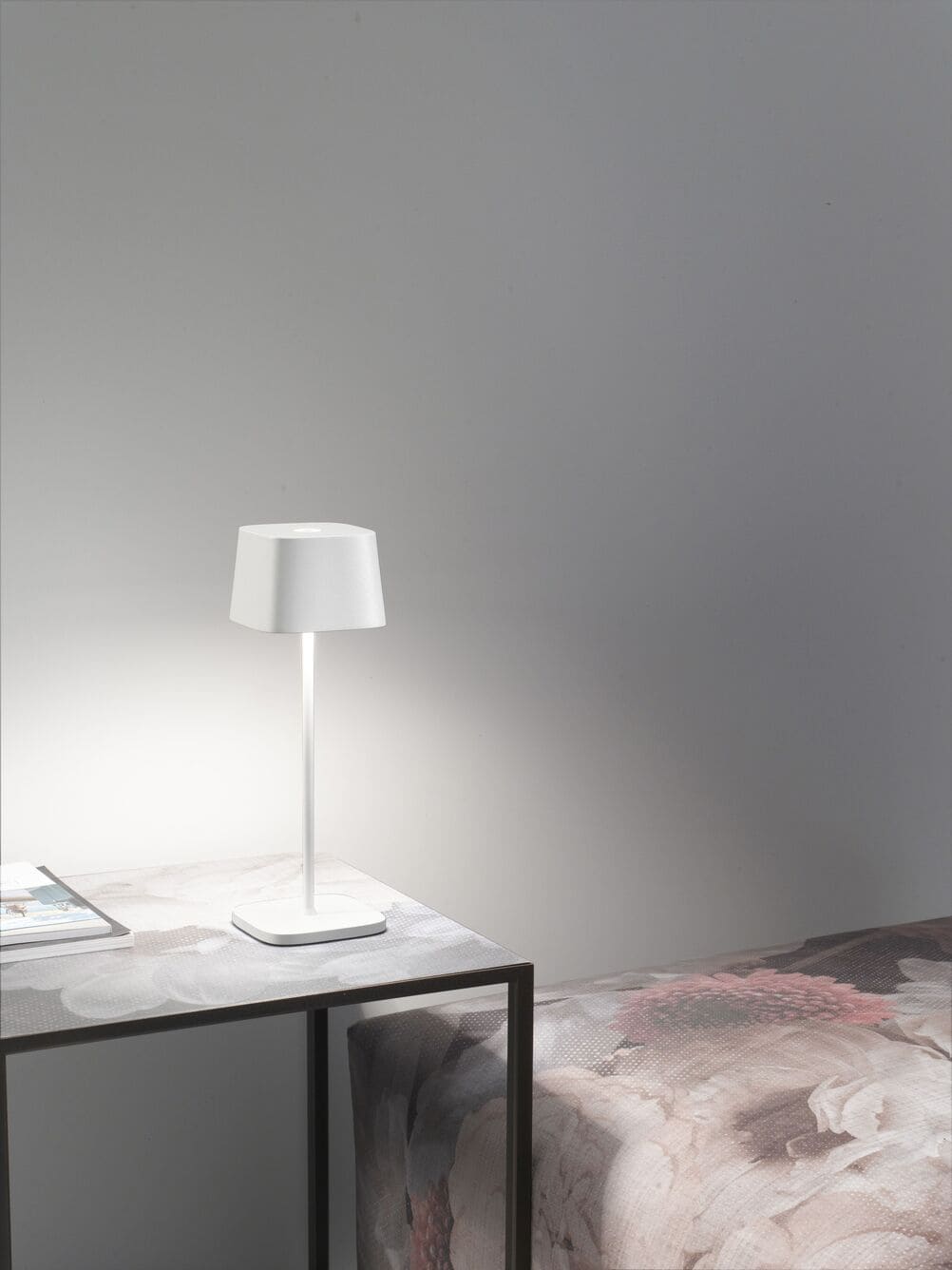 Ofelia pro ist eine tragbare und wiederaufladbare Tischleuchte mit Akku. Sie ist ausgestattet mit: Kontaktladestation, Touchdimmer und der Memory-Funktion der Dimmstufe, die die Dimmstufen speichert. Folglich entspricht die Lichtintensität bei jedem Einschalten der zuvor eingestellten. Die Lampe ist außerdem mit der Funktion ausgestattet, die Farbtemperatur des Lichts zwischen 2700 und 3000 ° Kelvin (dynamisches Weiß) zu wählen.