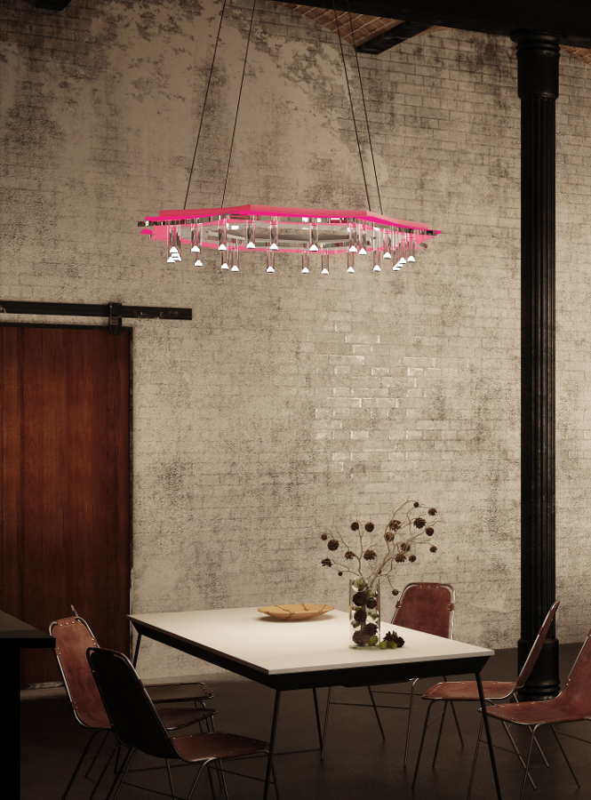 Das Vergehen der Zeit, die Sedimentation der Erinnerung, die angesammelte Weisheit: das sind die Elemente, die dieses Projekt enthält und ausdrückt. Es ist ein Zitat der klassischen Leuchter, mit geschwungenen Formen, und auf denen einst die Kerzen platziert waren. Die Neuauslegung beinhaltet ein gewundenes, lasergeschnittenes Design mit aus transparentem Plexiglas bestehenden, mit einem speziellen Diffusor ausgestatteten Zylindern, die an die Idee der Kerze erinnern. Das von Old Age produzierte indirekte Licht wird von zahlreichen LEDs mit Farbtemperatursteuerung erzeugt.