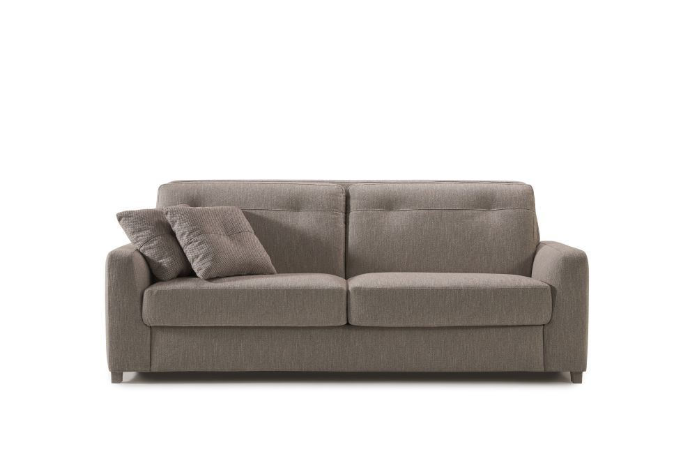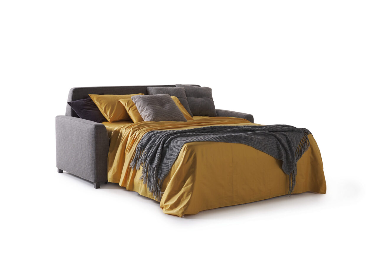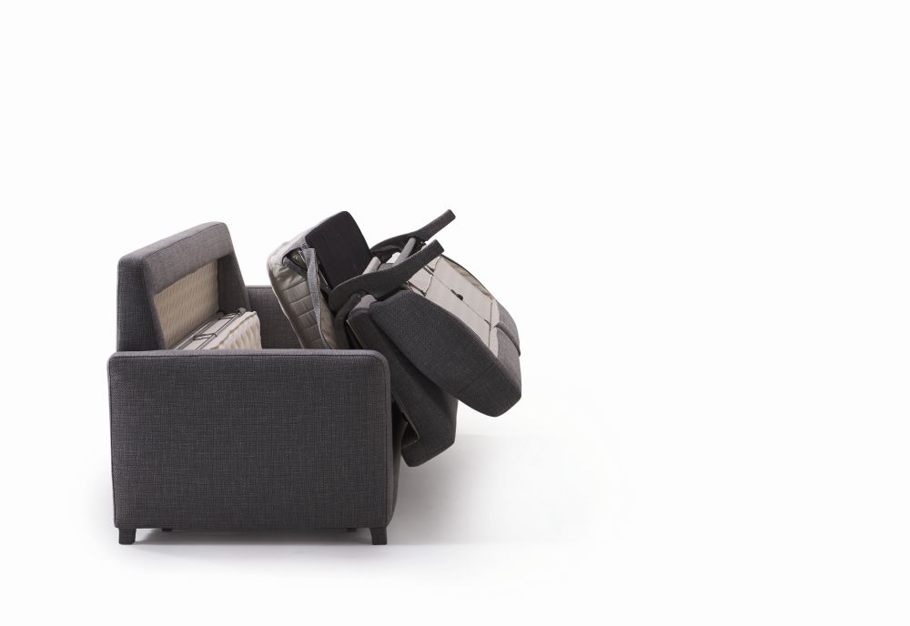 Oliver, dass neue Schlafsofa von Milano Bedding wurde von Alessandro Elli entworfen. Das Design mit seiner schlichten und klaren Linienführung machen Oliver zu einem besonderen Modell – 100% „Made in Italy“. Die hohen, trapezförmigen Rückenlehnen sind ein besonderes Stilelement dar und werden von den Rückenkissen in der Sofafunktion perfekt unterstützt. Einmal mit wenigen Handgriffen zum Schlafsofa verwandelt, wird daraus ein schönes, ansprechendes Kopfteil. Diese Designsprache setzt sich perfekt in den Armlehnen fort. Oliver offeriert besten Sitzkomfort, der optimal von den hochwertigen Kissenfüllungen ergänzt wird. „Die Synthese aus dem Konzept und dem Design des Oliver garantiert einen äußerst großzügigen Komfort und ein hohes Maß an Eigenständigkeit: Die optimale Neigung der Rückenlehne, die Nahtführung an den Armlehnen und die Füße sind dabei wesentliche Bestandteile und verleihen Oliver im Ganzen eine große Leichtigkeit und Harmonie“. Alessandro Elli Die hochwertige Mechanik wurde so konzipiert, dass aus dem Oliver mit wenigen, einfachen Handgriffen ein vollwertiges Bett wird. Eine Metallunterfederung, oder ein optionaler Lattenrost in Verbindung mit einer 16 oder 18 cm hohen Matratze und weitere Komfortoptionen machen Oliver zu einem erholsamen Schlafplatz. Die Füße sind mit demselben Stoff bezogen wie der Sofabezug. Der Bezug ist komplett abziehbar und je nach dem ausgewählten Stoff waschbar. Für einen einfachen Transport ist das Modell komplett zerlegbar. Oliver ist selbstverständlich auf ohne Schlaffunktion erhältlich.